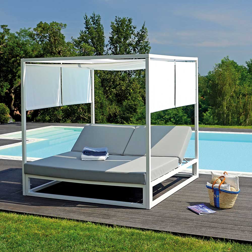 Denna lyxiga möbelkollektion ger en touch av modern elegans till alla utrymmen, utan att någonsin ge upp en spännande och mycket scenografisk atmosfär . Gäller för alla typer av utomhusmiljöer, denna dagbädd kommer att ge en känsla av lyx och sofistikering till miljön där den kommer att vara avsedd. Dagbädden förkroppsligar stela och motståndskraftiga strukturer för vila och stöd samt motstånd mot påverkan och klimatförändringar.