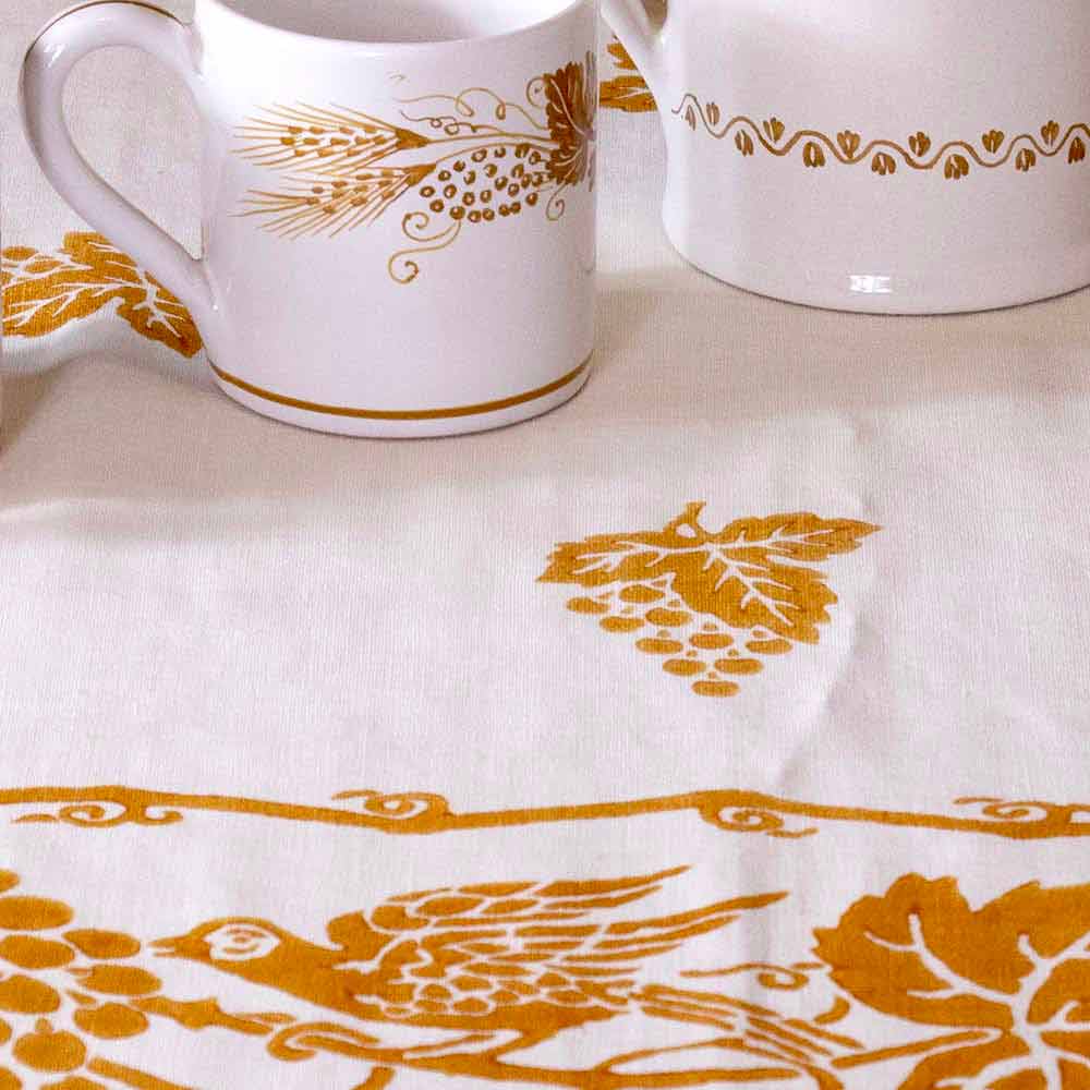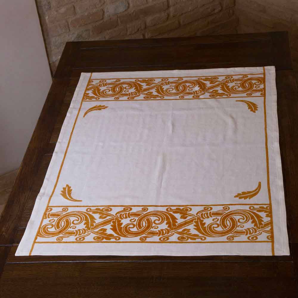 Hantverkare frukostservice (placemat och 2 servetter) av rent linne med konstnärligt tryck på handinredda antika tyger, tillgängliga i tre varianter, en unik kvalitetsbit tillverkad i Italien.