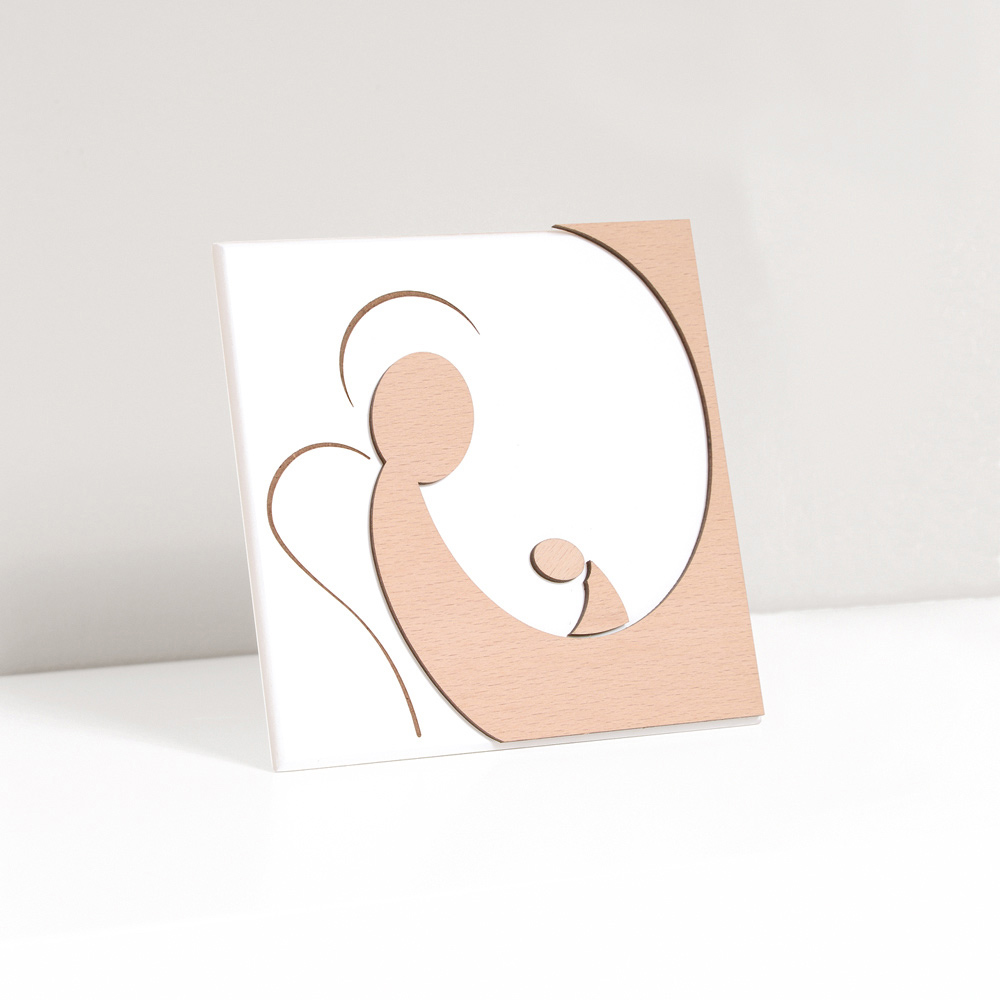 De italienska hantverkarna har arbetat hårt för att skapa enkla och raffinerade ytbehandlingar för hand som bäst skulle kunna förstärka mammans ängel kopplad till barnet. En bild av stor känslomässig betydelse som ger upphov till starka och betydelsefulla känslor hos den som tittar på den.