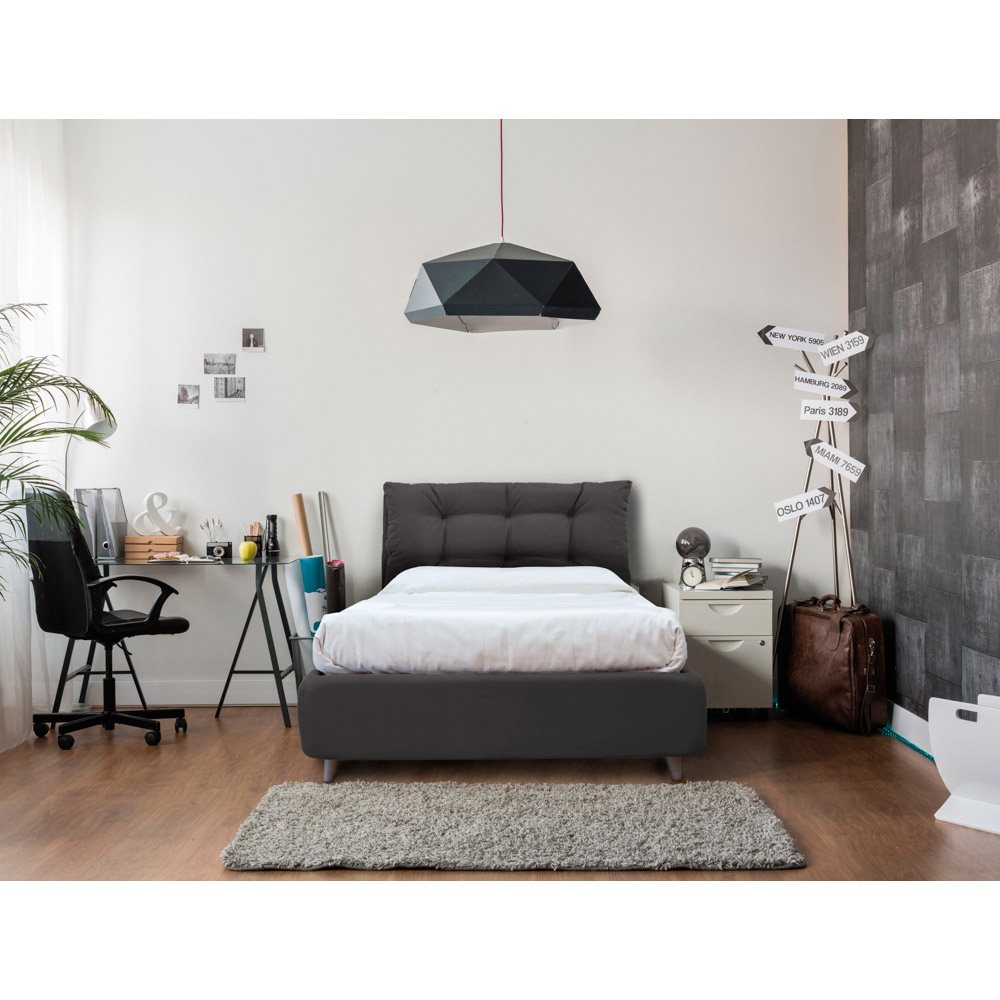 Modell med standardbehållare : vadderad sängram med stödd bas ingår och bekväm 11 cm hög fot som möjliggör rengöring under strukturen. Behållare med sned öppning som lägger till det praktiska i ett stort fack med otrolig kapacitet.