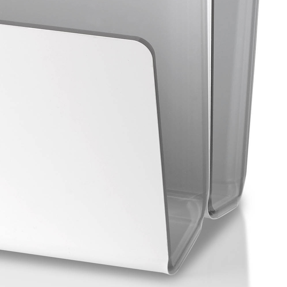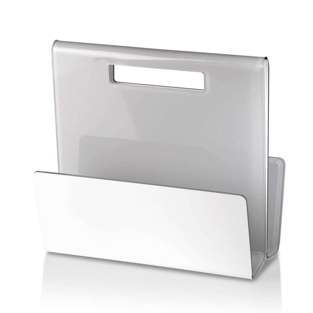 Tidningsställ i vardagsrum i vitt eller vitt och duvgrå akrylkristall tillverkad i Italien.
