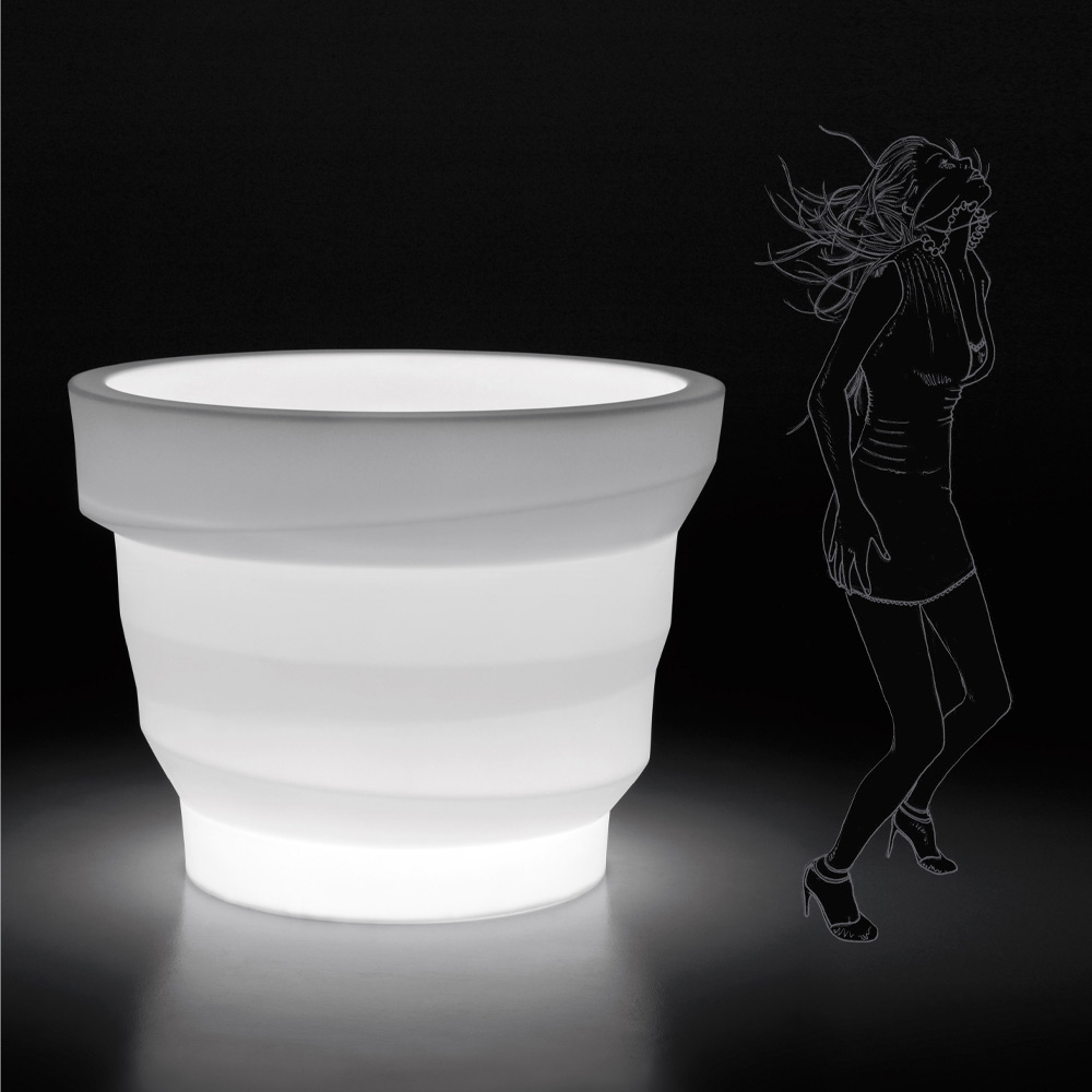 Utomhus lysande vas i ogenomskinlig polyeten med LED tillverkad i Italien.