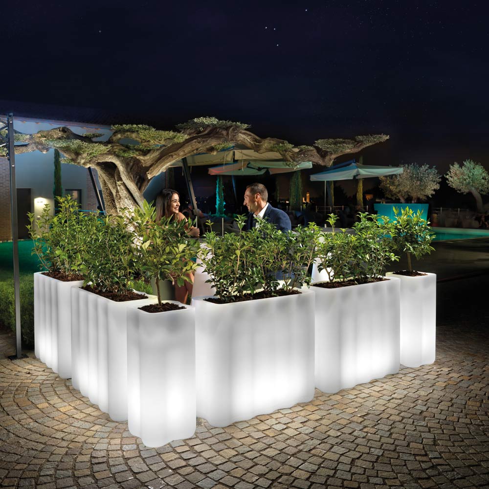 Den lysande utomhusvasen i pärlpolyeten tillverkad i Italien . Det integrerade LED-ljuset förvandlar denna utomhusvas till en inredningstillbehör med mjuka och slingrande linjer för att återspegla en idé om klassisk men otroligt elegant stil. Strukturen inkluderar också ett vattendräneringssats för att utnyttja den maximala praktiska och funktionaliteten hos denna produkt utan att försumma det slutliga resultatet, en elegant och suggestiv ljus atmosfär.