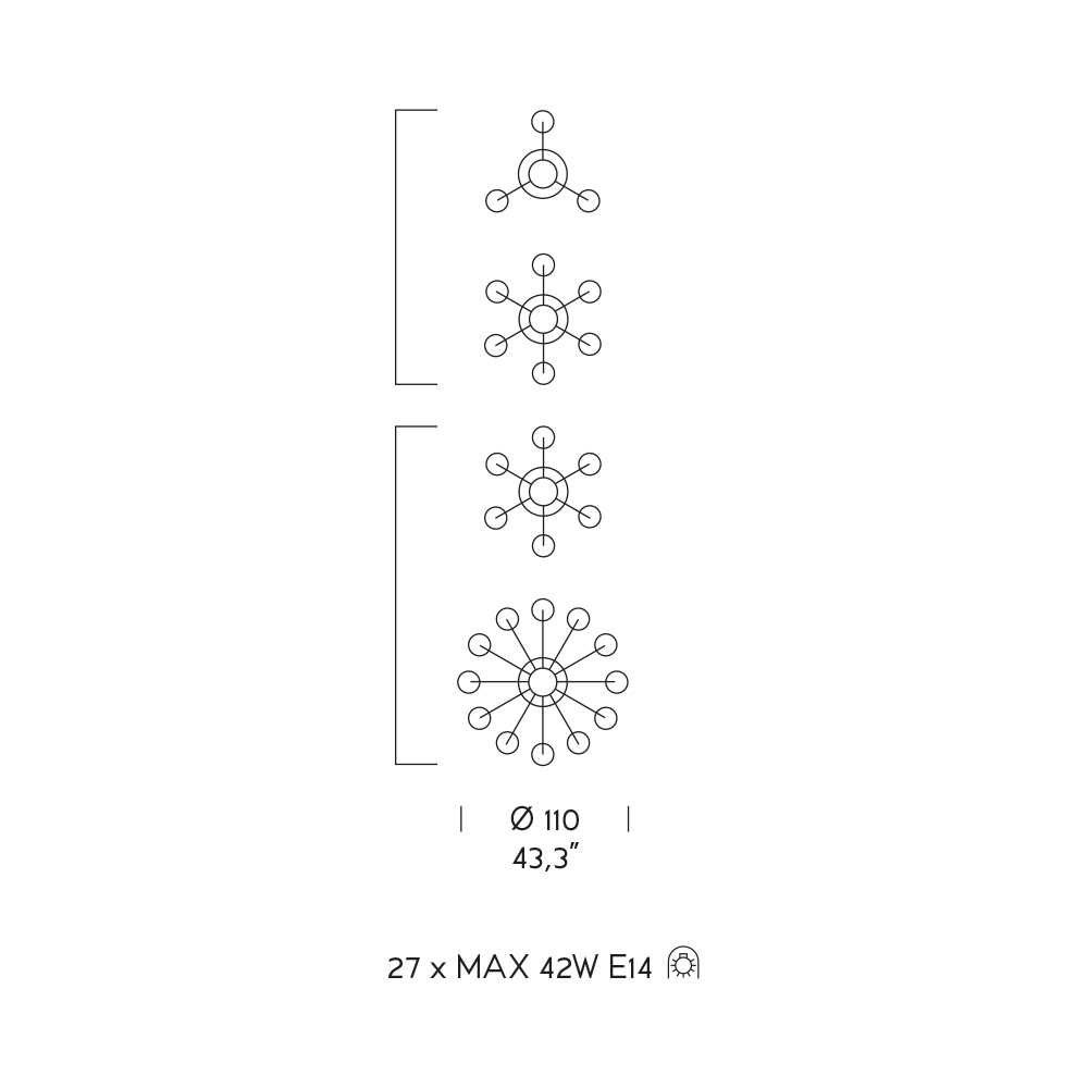 Glödlampor (ingår ej) : 27 x MAX 42W E14