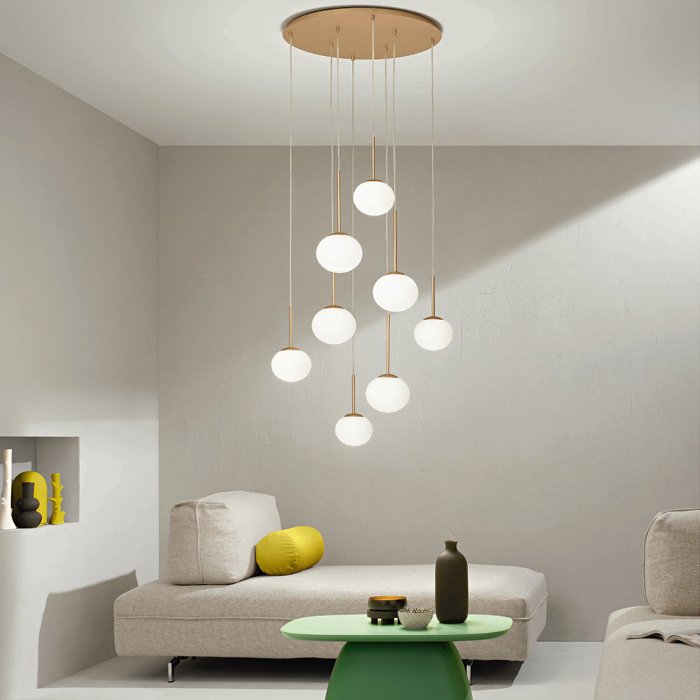 målad metall och blåst glas med guldfinish med LED-ljus och