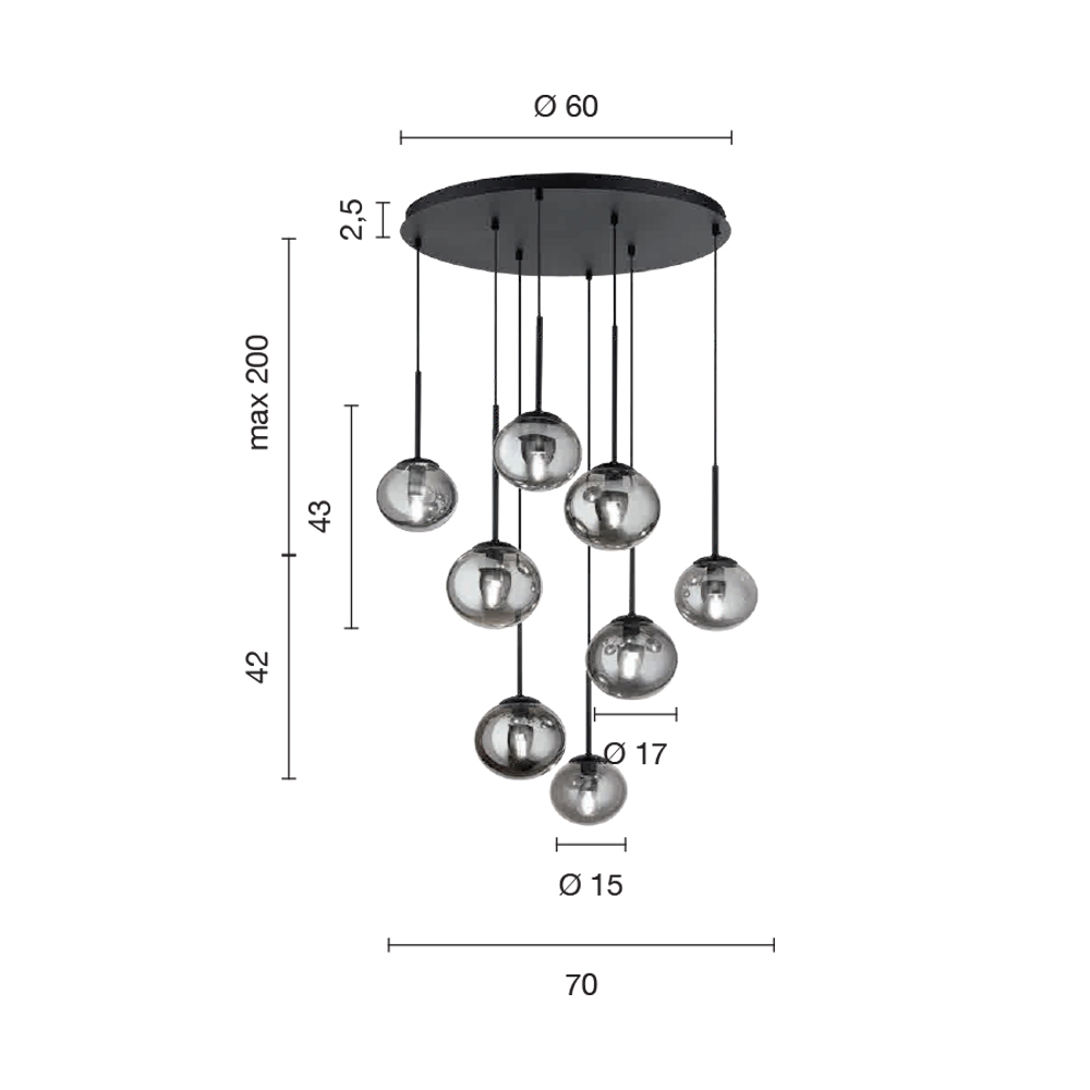 Ljuskrona med LED-ljus i målad metall och blåst glas Tillverkad i Italien