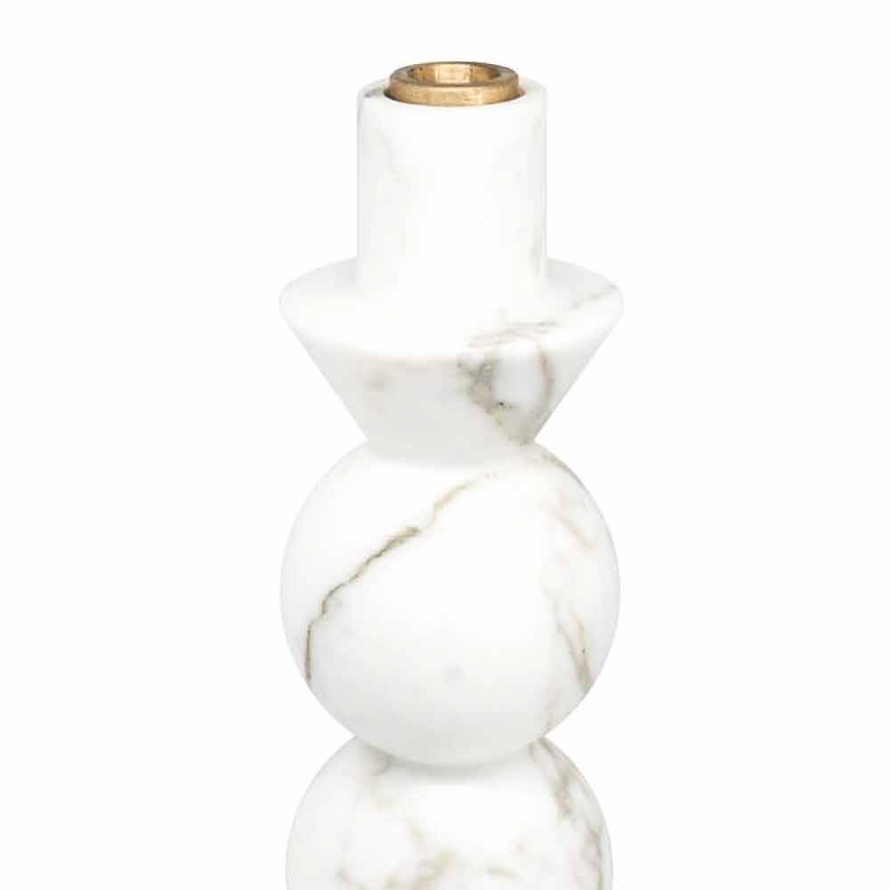 Ljusstake av vit Carrara-marmor och mässing av hög kvalitet. Unikt stycke eftersom varje marmorblock som används skiljer sig åt i vener och nyanser. Marmornen kommer från Poggio Silvestre-stenbrottet som är en källa till vit kvalitetsmarmor av första kvalitet som klassificerats sedan förra seklet.
