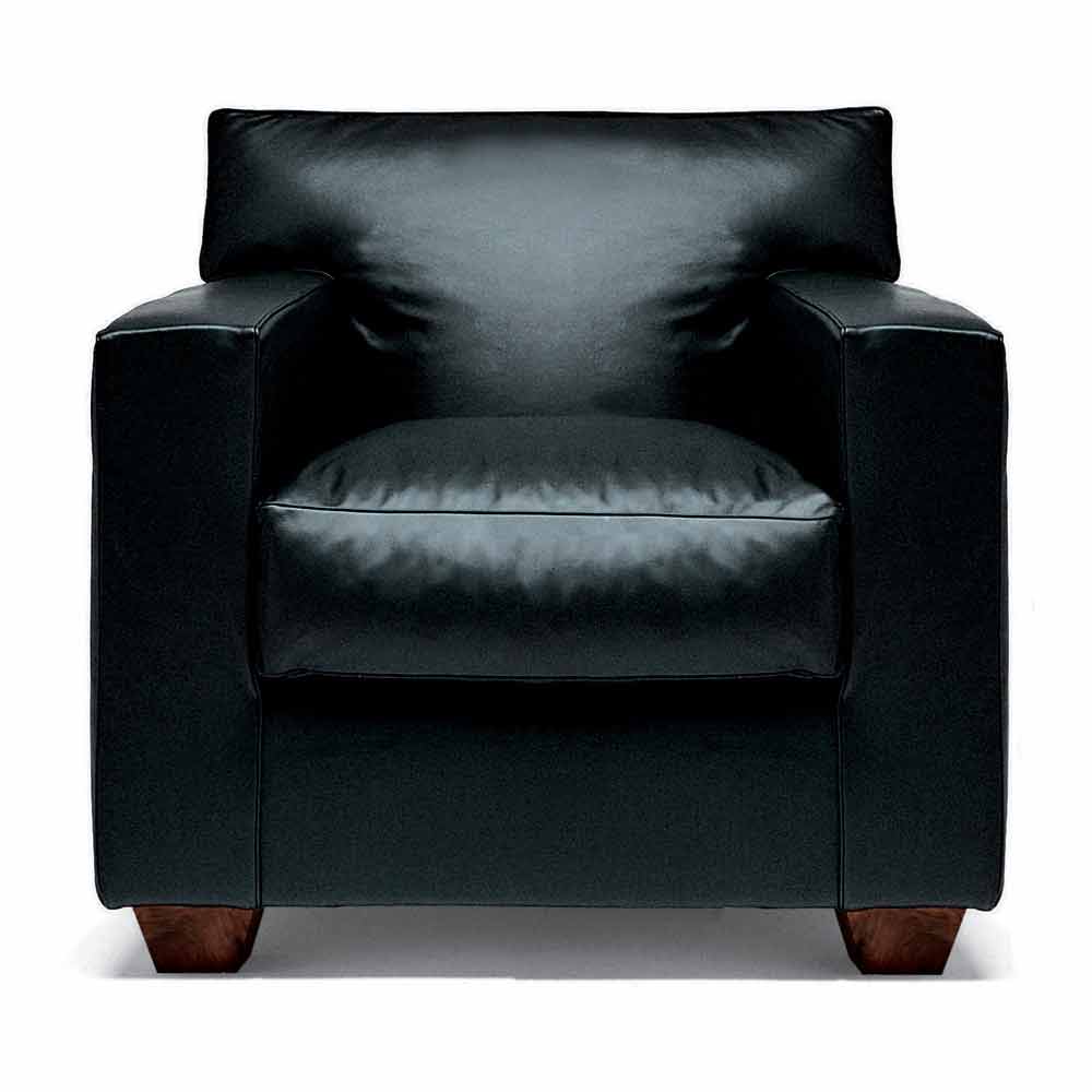 Vardagsrumsfåtölj klädd i läder med träfötter Made in Italy.