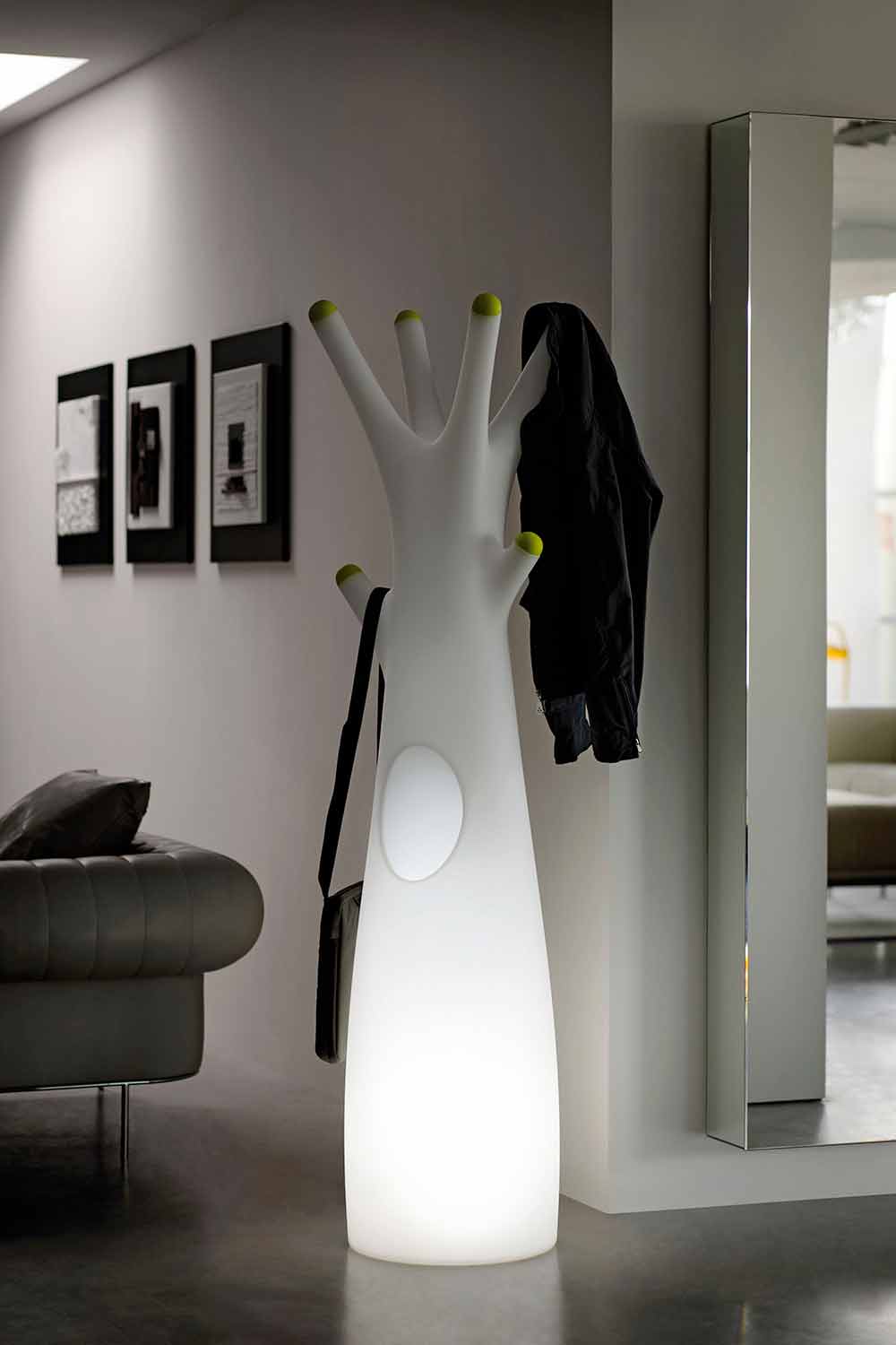 polyeten , ett högkvalitativt slagtåligt material som gör produkten praktisk och funktionell utan att försumma den dekorativa och visuella aspekten. LED-lampan lyser upp hela artikelns struktur, vilket gör den med stor visuell inverkan också tack vare dess design som påminner om formen på ett träd med ett praktiskt inre utrymme som är perfekt för förvaring av nycklar, glasögon eller något föremål du vill ha. Komplett med kallt LED-ljussats som innehåller: en 8,5 W energiklass A-lampa, en bipolär europeisk kontakt, en fotbrytare och en praktisk 370 cm lång transparent kabel.