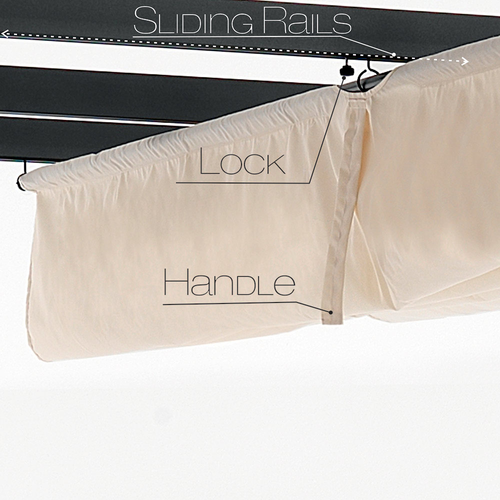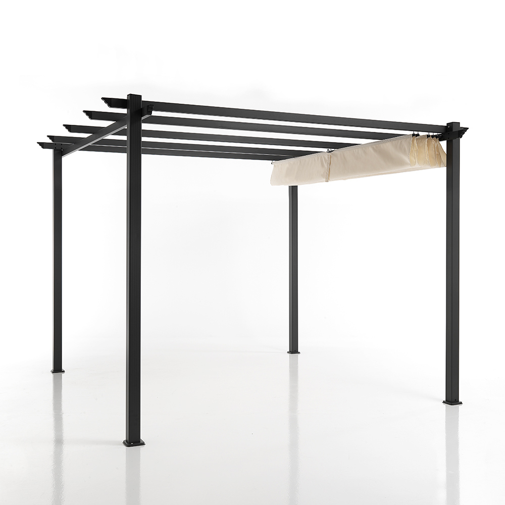 Det infällbara locket gör att du enkelt kan justera mängden ljus och skugga, vilket ger oöverträffad flexibilitet för att passa alla tider på dygnet. Oavsett om du är värd för en sommarlunch eller hittar en kvällstillflykt för en aperitif, förvandlar detta lusthus alla utomhusutrymmen till ett välkomnande och mångsidigt utomhusrum.