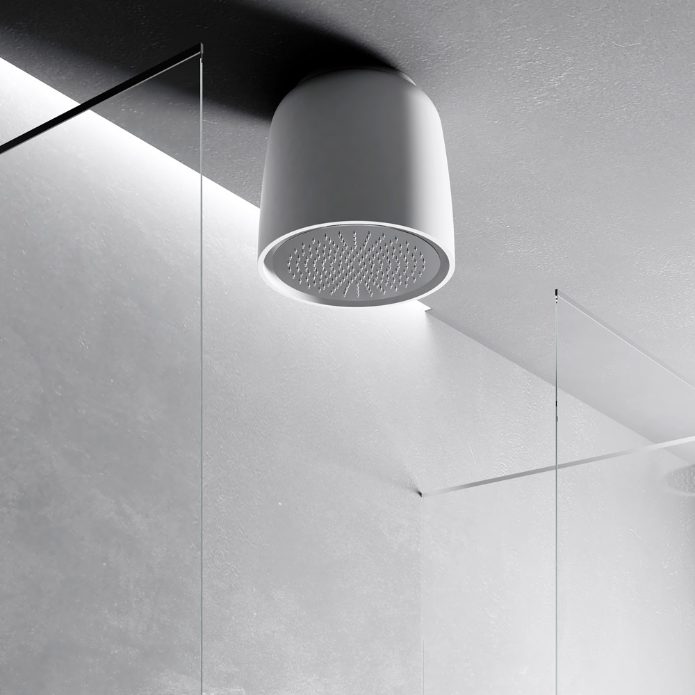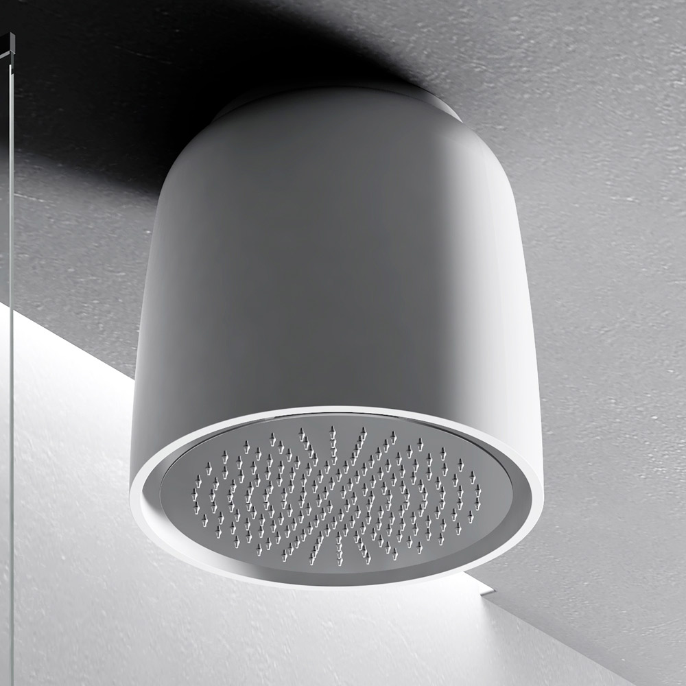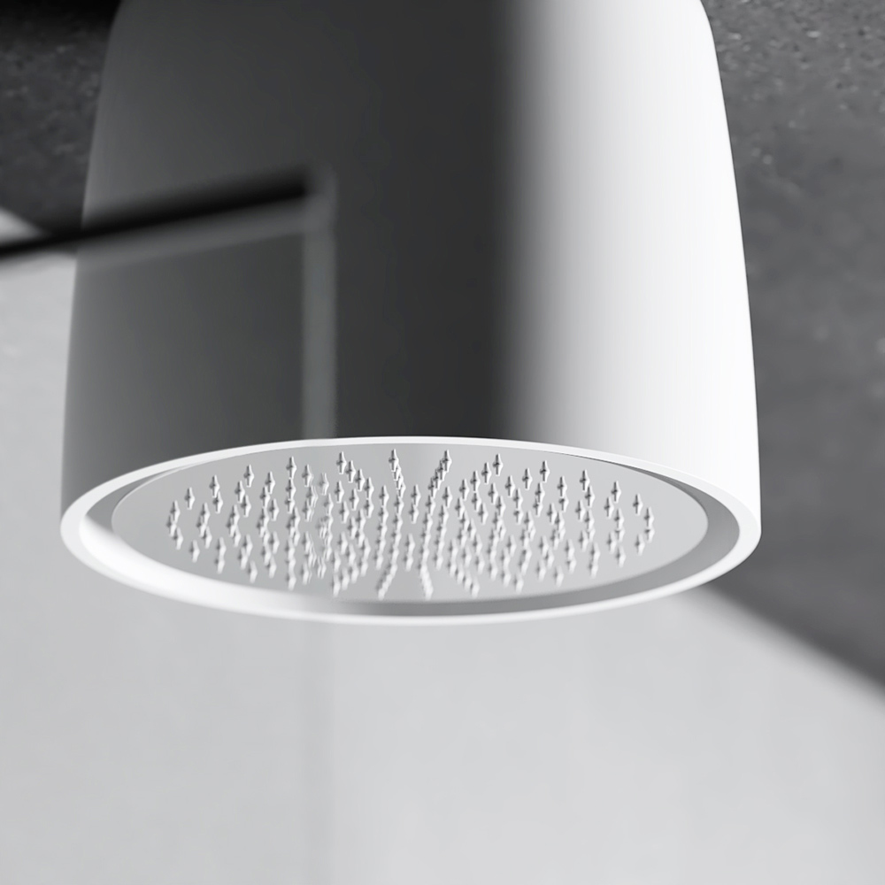 Made in Italy. Detta minimalistiska designduschhuvud är ett mästerverk av funktionalitet och modern stil . Den mattvita finishen och den cylindriska formen gör den till en elegant fokuspunkt i alla moderna badrum, medan den generösa sprayöppningen säkerställer en behaglig och avkopplande duschupplevelse, som liknar naturliga regn. Dess takinstallation ger ett rent och integrerat utseende, frigör utrymme och minskar visuell röran. Varje aspekt av detta duschmunstycke har designats med välbefinnande och komfort i åtanke, vilket förvandlar vardagsbadet till en upplevelse av lyx och avkoppling . Det är det perfekta tillägget för alla som vill höja sin personliga vårdrutin till ett ögonblick av ren sensorisk njutning .