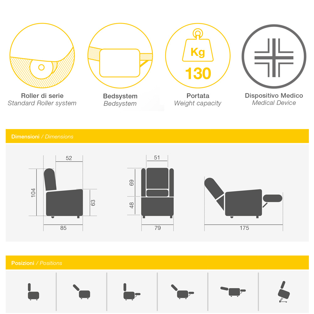 Fåtölj med 2 motorer med oberoende fot- och ryggrörelse , med följande funktioner: