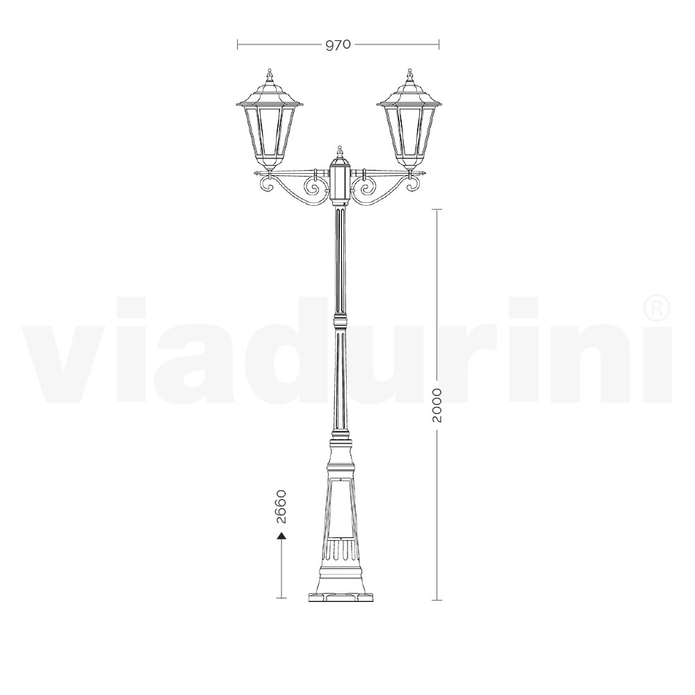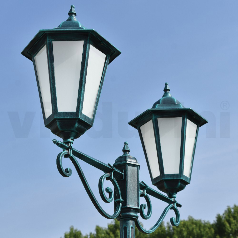 2-ljus gatlampa i aluminium i vintagestil med glasdiffusor Tillverkad i Italien.