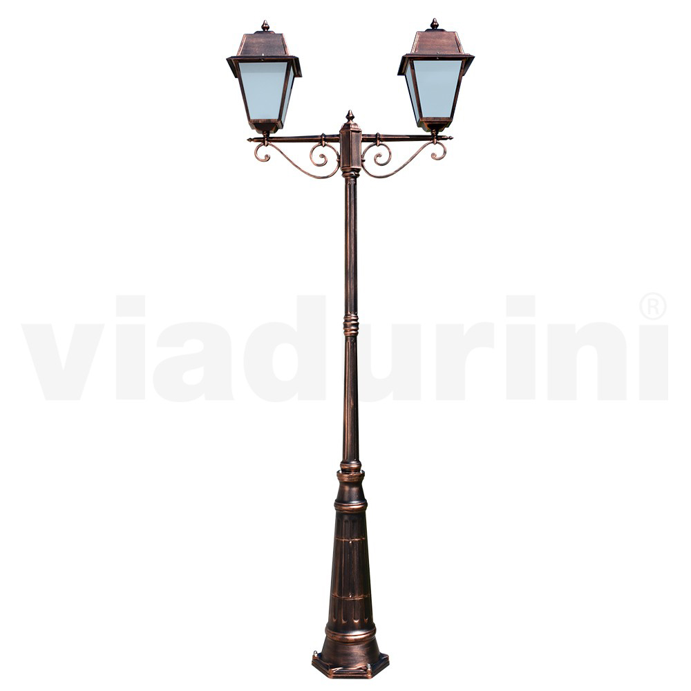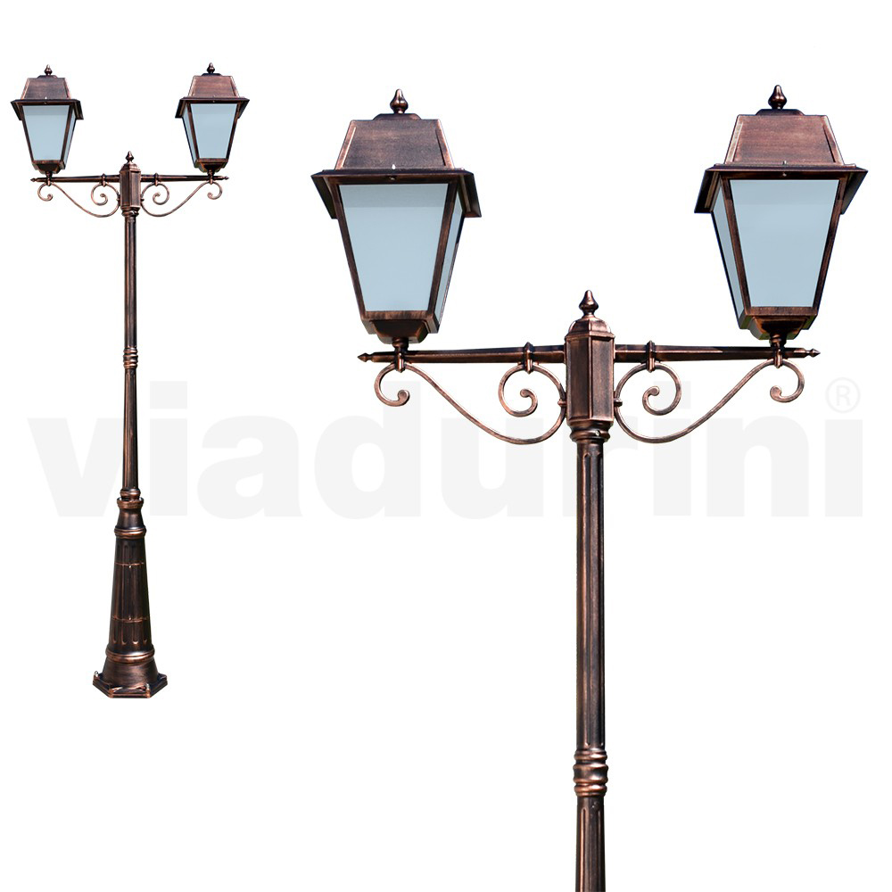 2-ljus trädgårdslampa i aluminium med glasdiffusor Tillverkad i Italien.