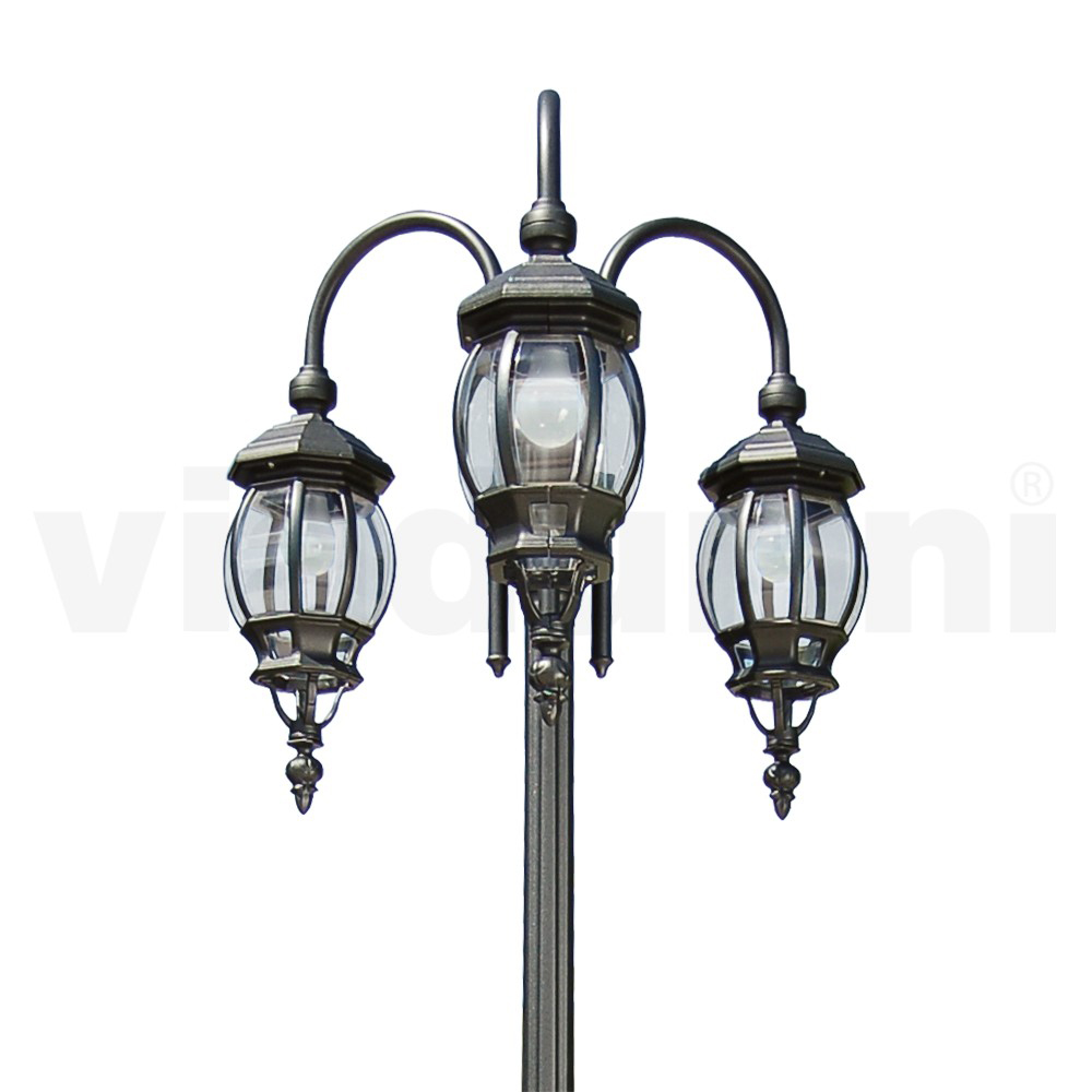 3-ljus gatlykta i vintagestil i antracitaluminium och polykarbonat Tillverkad i Italien.
