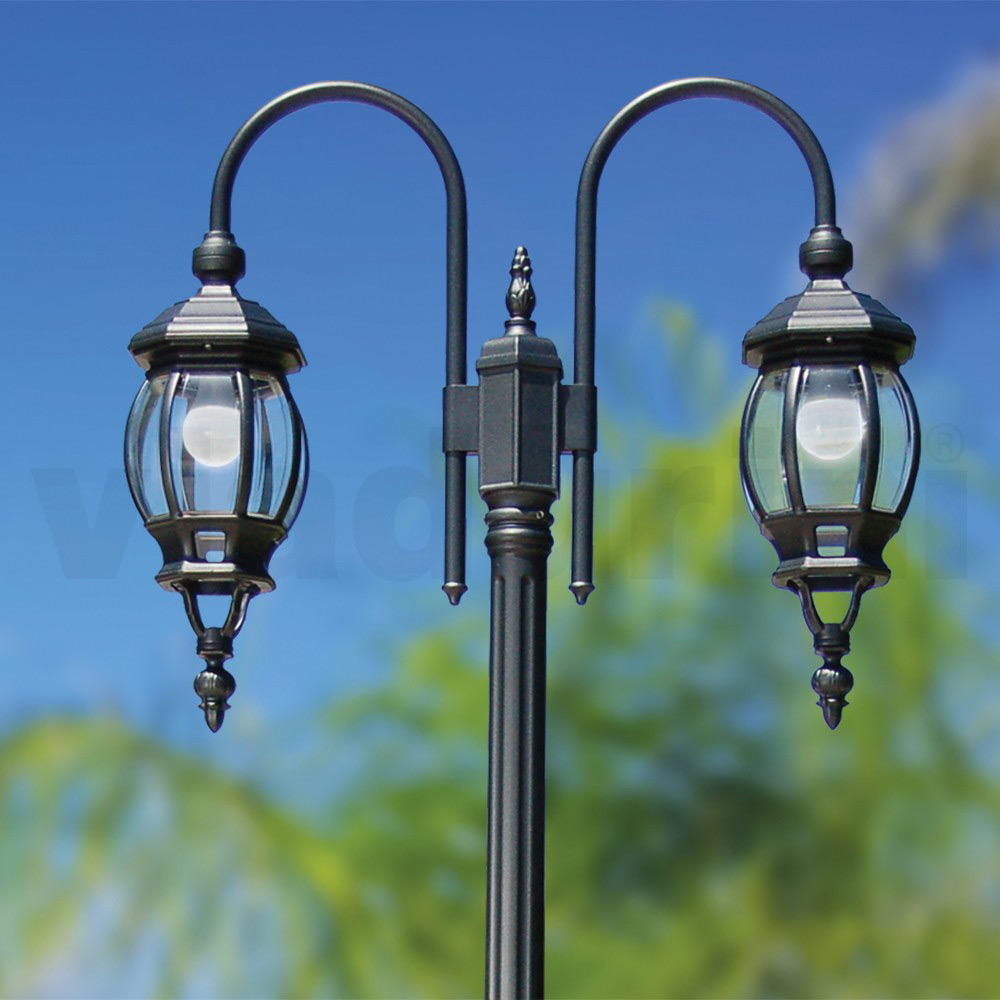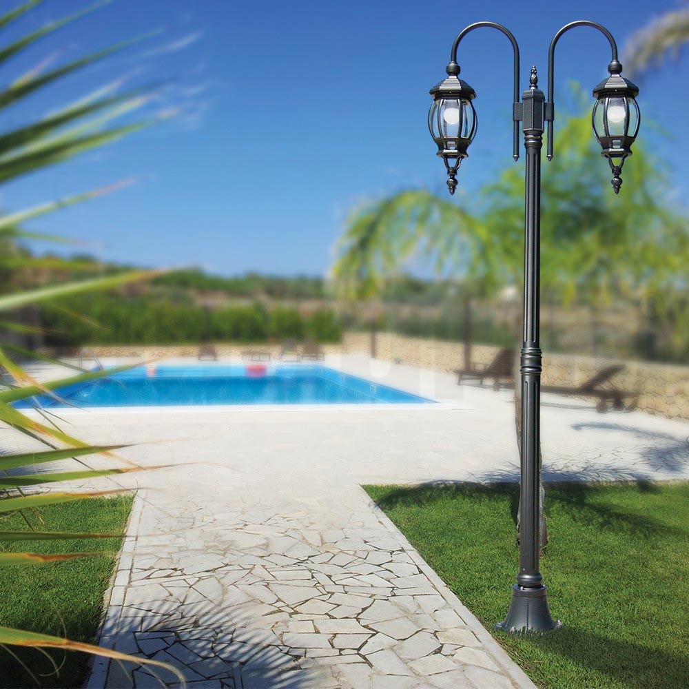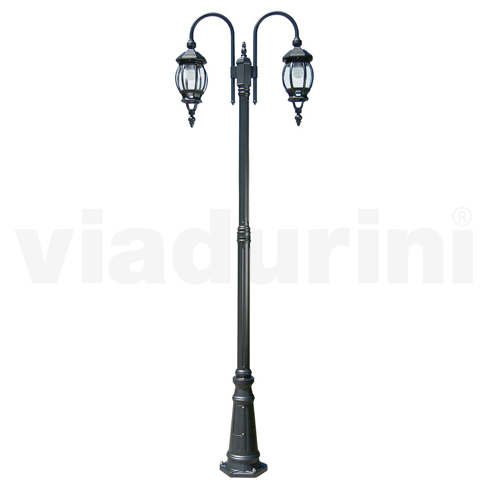Vintage gatlykta med 2 lampor i grå aluminium och polykarbonat Tillverkad i Italien.