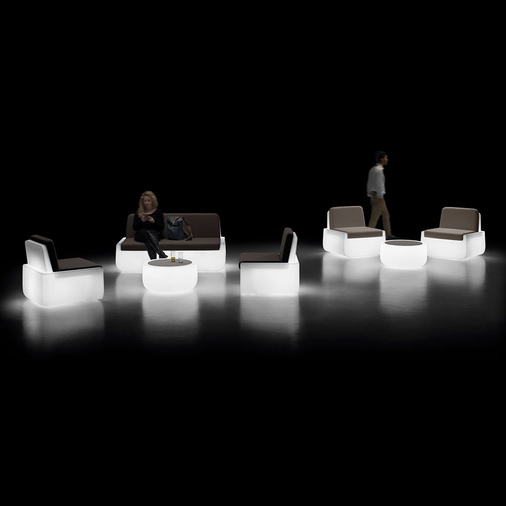 Design fåtölj utomhus i polyeten med kudde och LED-lampa Tillverkad i Italien.