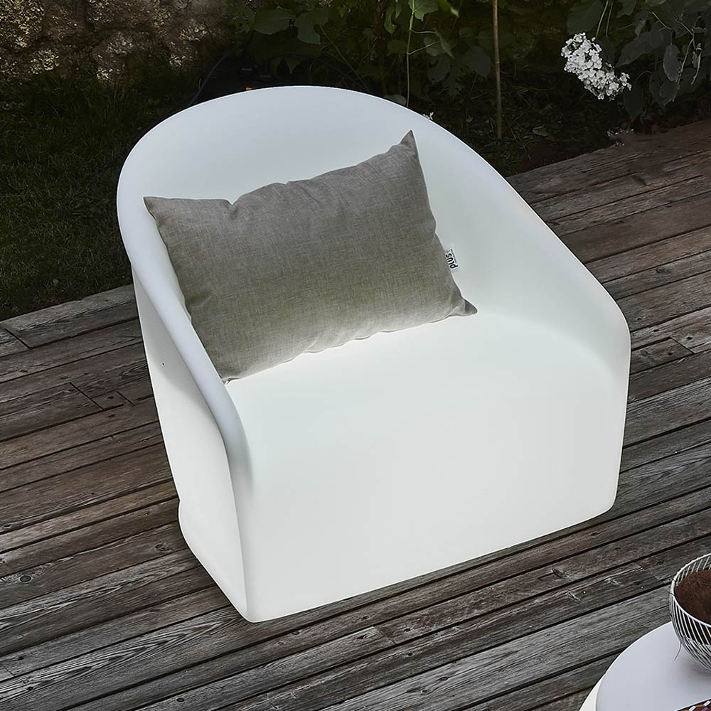 Ljus utomhusfåtölj i ogenomskinlig polyeten med LED tillverkad i Italien.