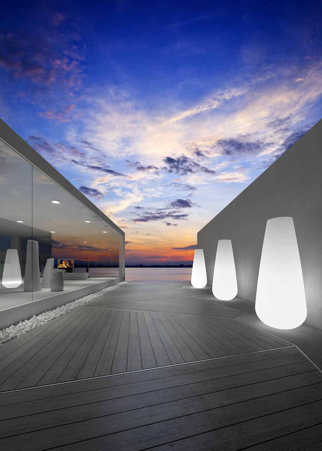 Stor dekorativ vas i polyeten för utomhusbruk med LED-ljus Tillverkad i Italien.