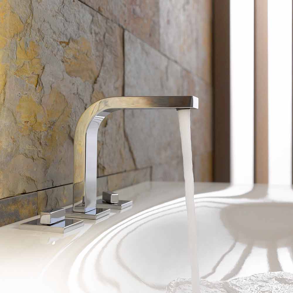 Denna typ av badrumstillbehör vinner uppmärksamhet tack vare den perfekta kombinationen av design och funktionell innovation . Till vänster hittar vi temperaturjusteringen medan till höger flödeshastighetsjusteringen och när den önskade temperaturen har uppnåtts återgår handtaget, om det lyfts uppåt, till utgångsläget och lyckas därmed behålla temperaturjusteringen.