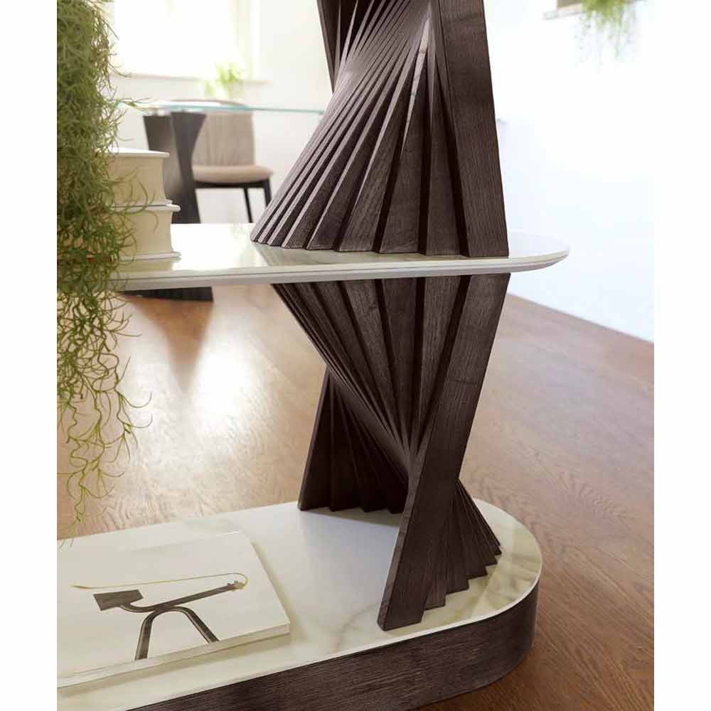 Designgolvbokhylla i ask med stenhyllor, högkvalitativ produkt tillverkad i Italien.