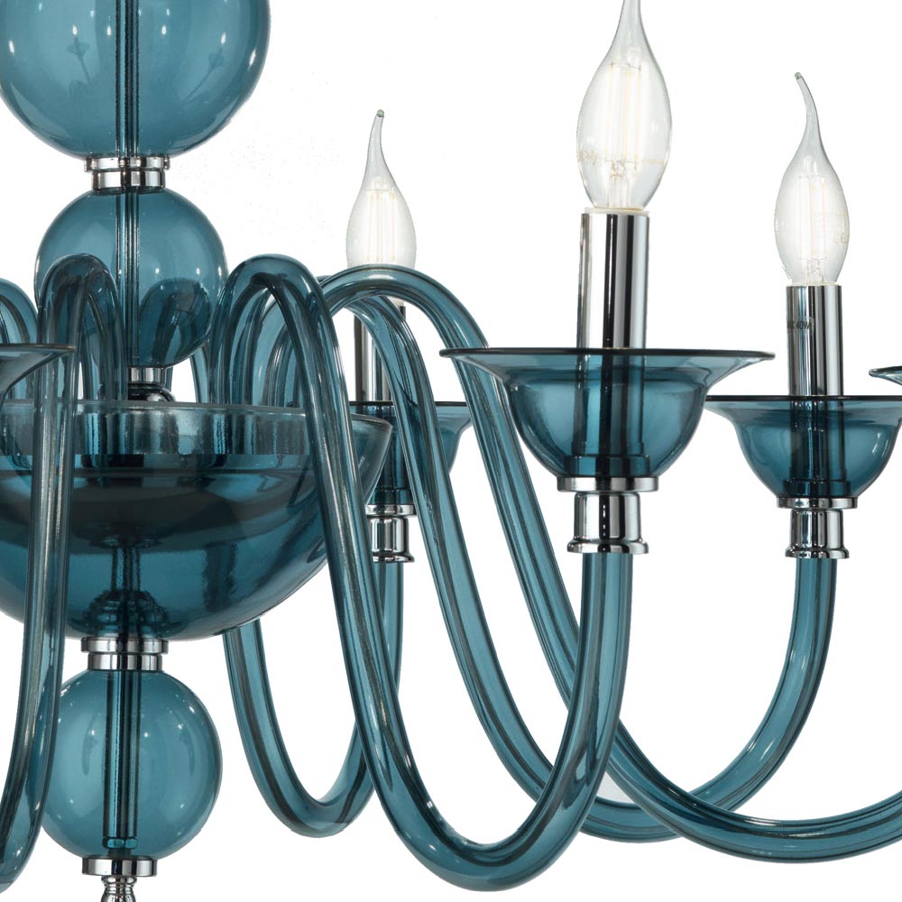 Klassisk 8-ljus ljuskrona i krommetall och handgjort glas, lyxig tillverkad i Italien.