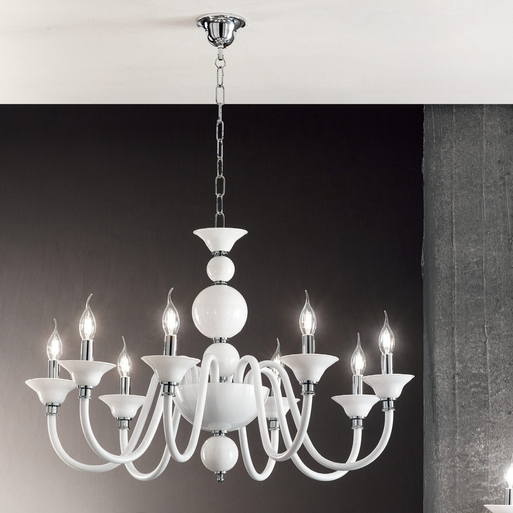 klassiska och lyxiga design består av sfärer placerade ovanför varandra för den lätta kroppen, som ger en glimt av krommetallkärnan, och från 8 välvda armar , helt tillverkat av