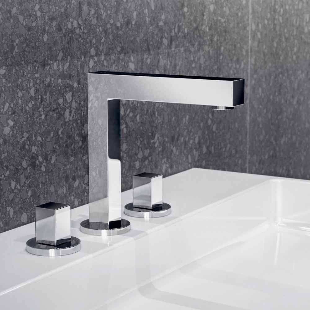 Modern 3-hål badrum sink kran gjord av mässing med krom.
