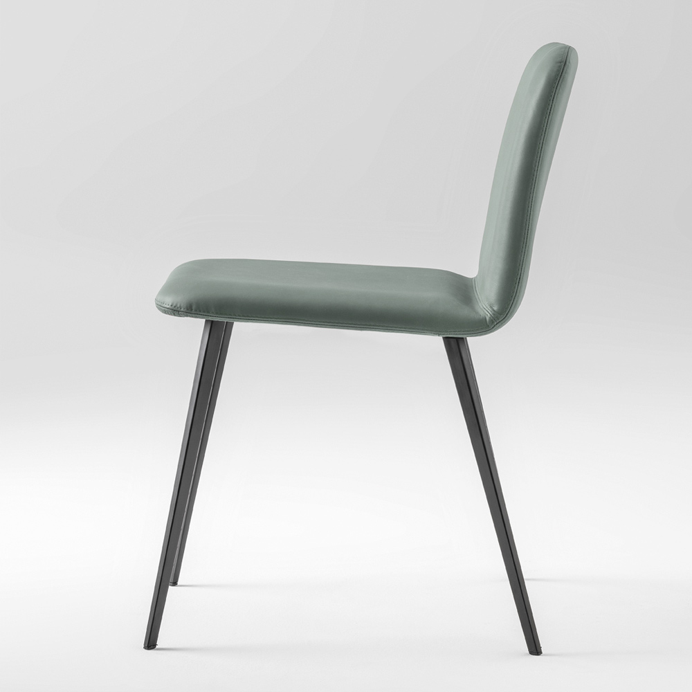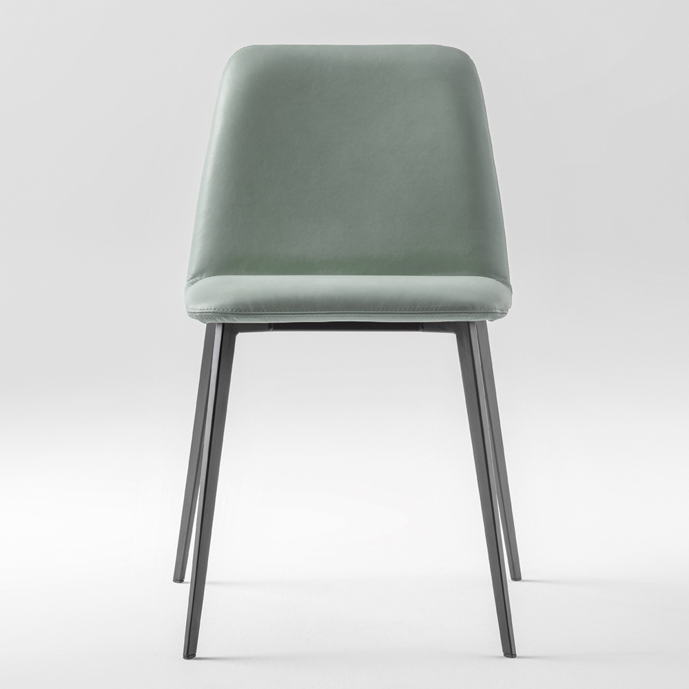 Stol för matsal eller kök tillverkad i Italien med blyantracitmålad metallkonstruktion och vadderat säte täckt av läder . En enkel och raffinerad stil kännetecknar denna stol med moderna funktioner som hämtar sin inspiration från 50-talets typiska mönster och återbesöker dem i en modern nyckel för att skapa en originalinredningslösning. Vad som är född är en plats som tack vare användningen av kvalitetsråvaror förenar funktionalitet och design och lyckas fullborda inredningen av rummet med personlighet och elegans .