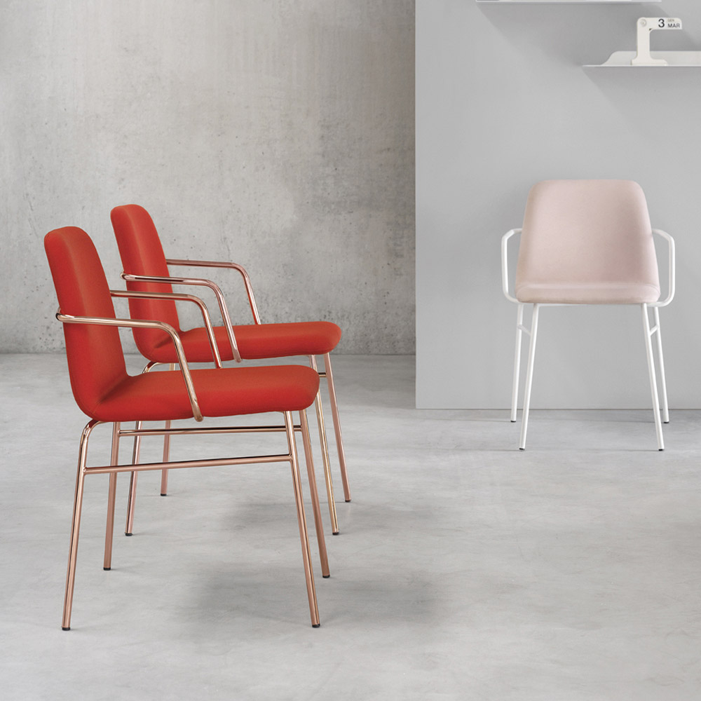 Hög kvalitet fåtölj tillverkad i Italien med målad metallram och vadderad chock och täckt av tyg. Ett välkomnande och bekvämt säte som kan göra varje ögonblick till ett ögonblick tillägnad avkoppling genom att låta dig skämmas bort med den mjuka och bekväma omfamningen av denna underbara moderna fåtölj. De omslutande formerna och den raffinerade designen kan karakterisera varje inredningskontext och erövra uppmärksamheten tack vare sin starka och eleganta personlighet.