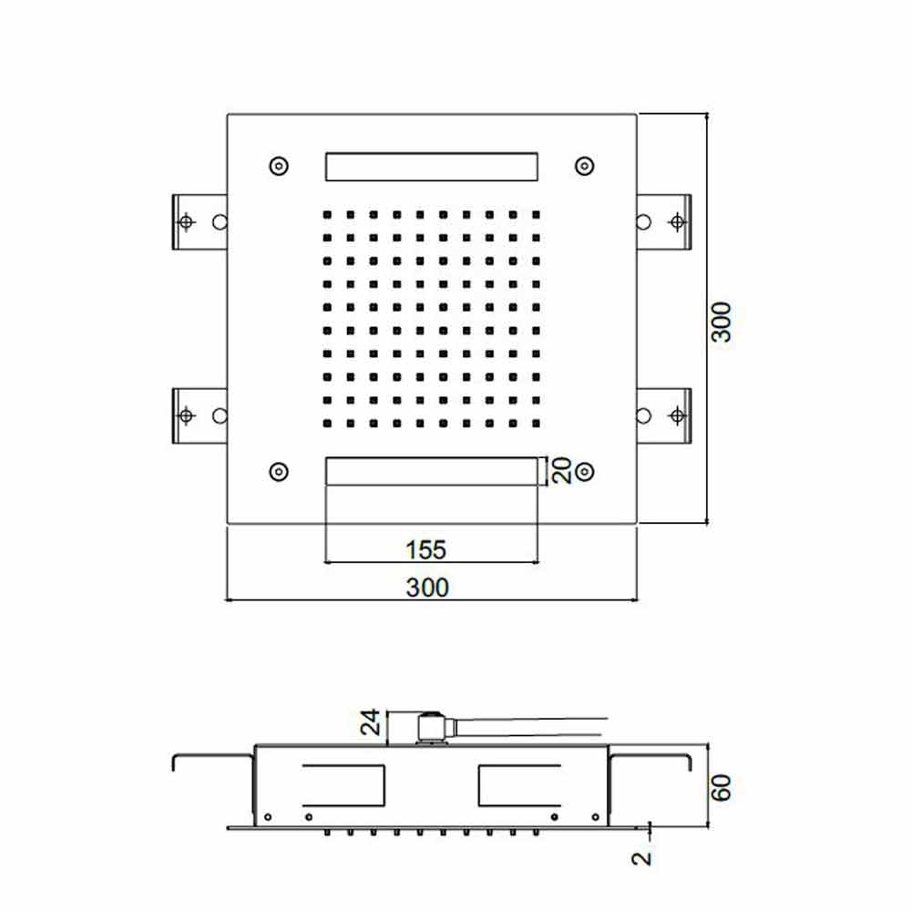 Egenskaper:- fyrkantigt duschhuvud i anti-kalksten rostfritt stål och enkelstråle