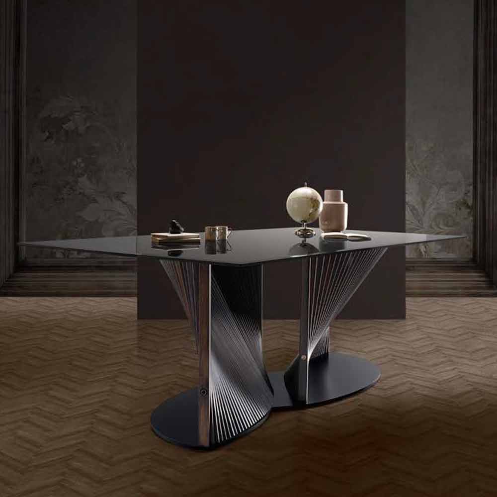 Elegant design matbord i rökt glas och trä, hög kvalitet Made in Italy.