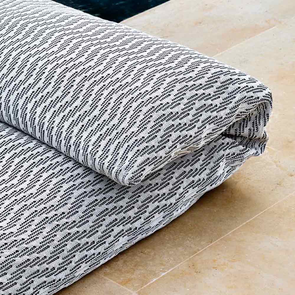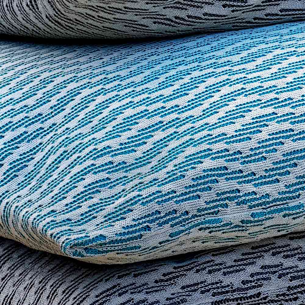 Den speciella vågiga väven karaktäriserar hela kollektionen för en design som bryter ner hårdhet och formell ro till förmån för frihet och kreativitet.