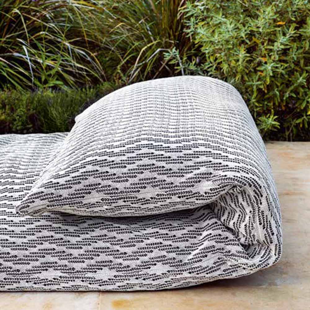 puff-dubbelsängen för utomhusbruk gjord av ett utomhusmaterial bestående av en blandning av