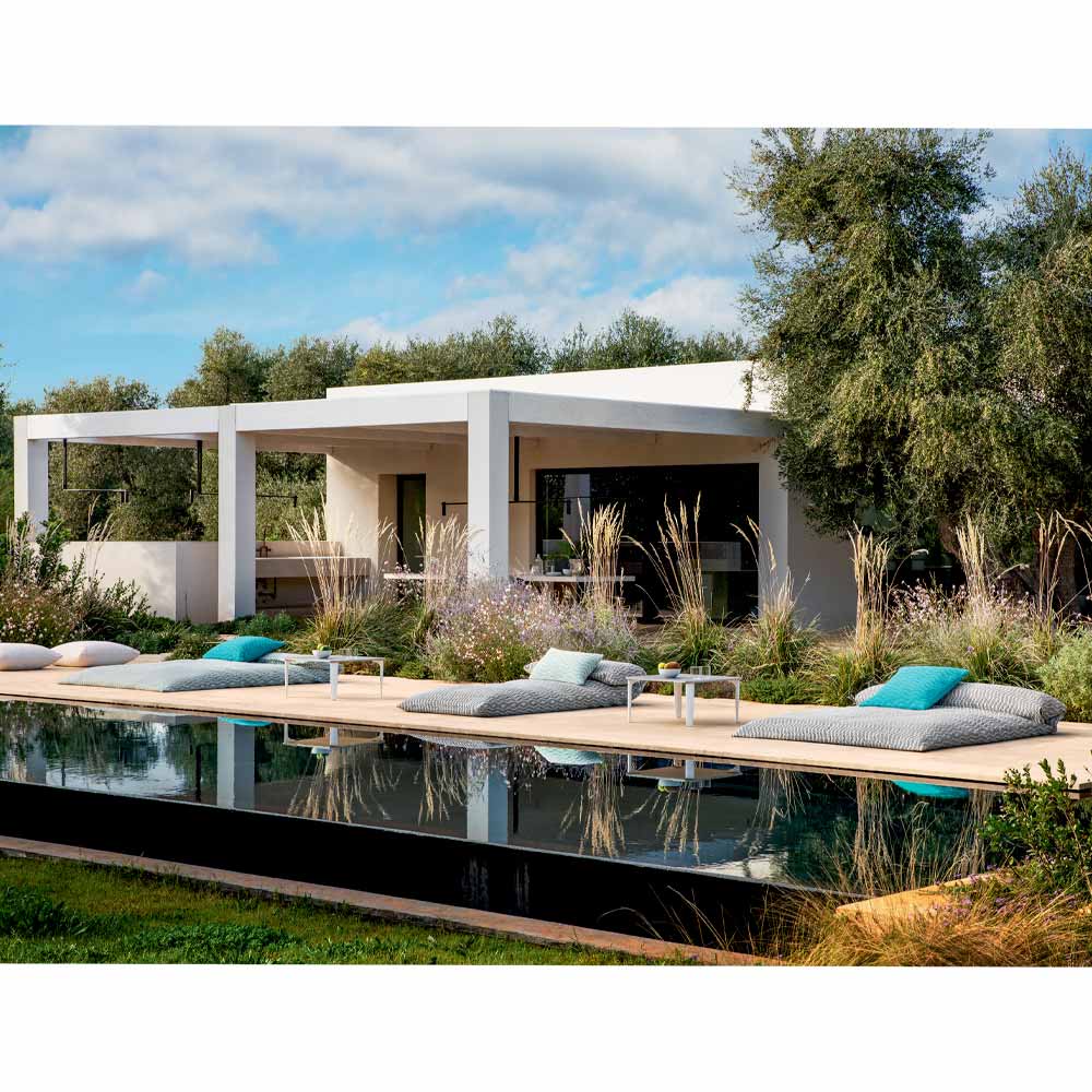 Utformad dagbäddspuff, dubbelsäng i PVC och PES i två färger tillverkade i Italien.