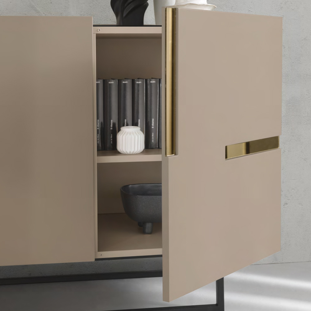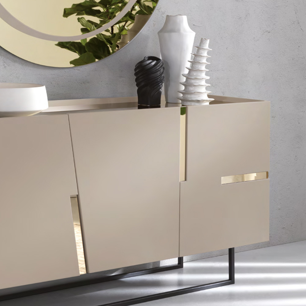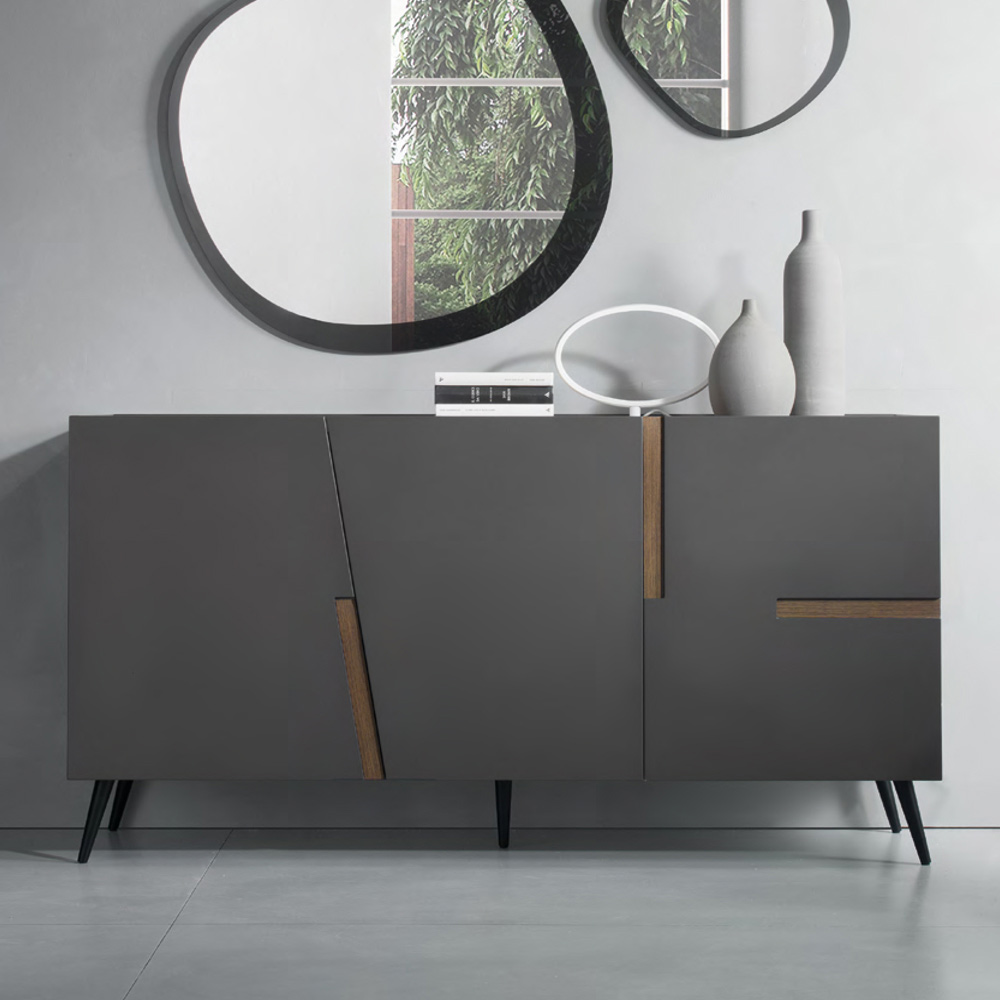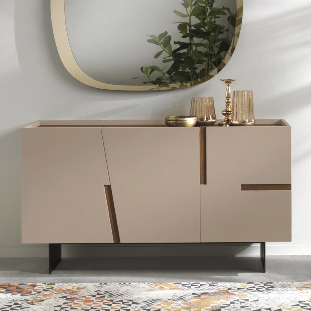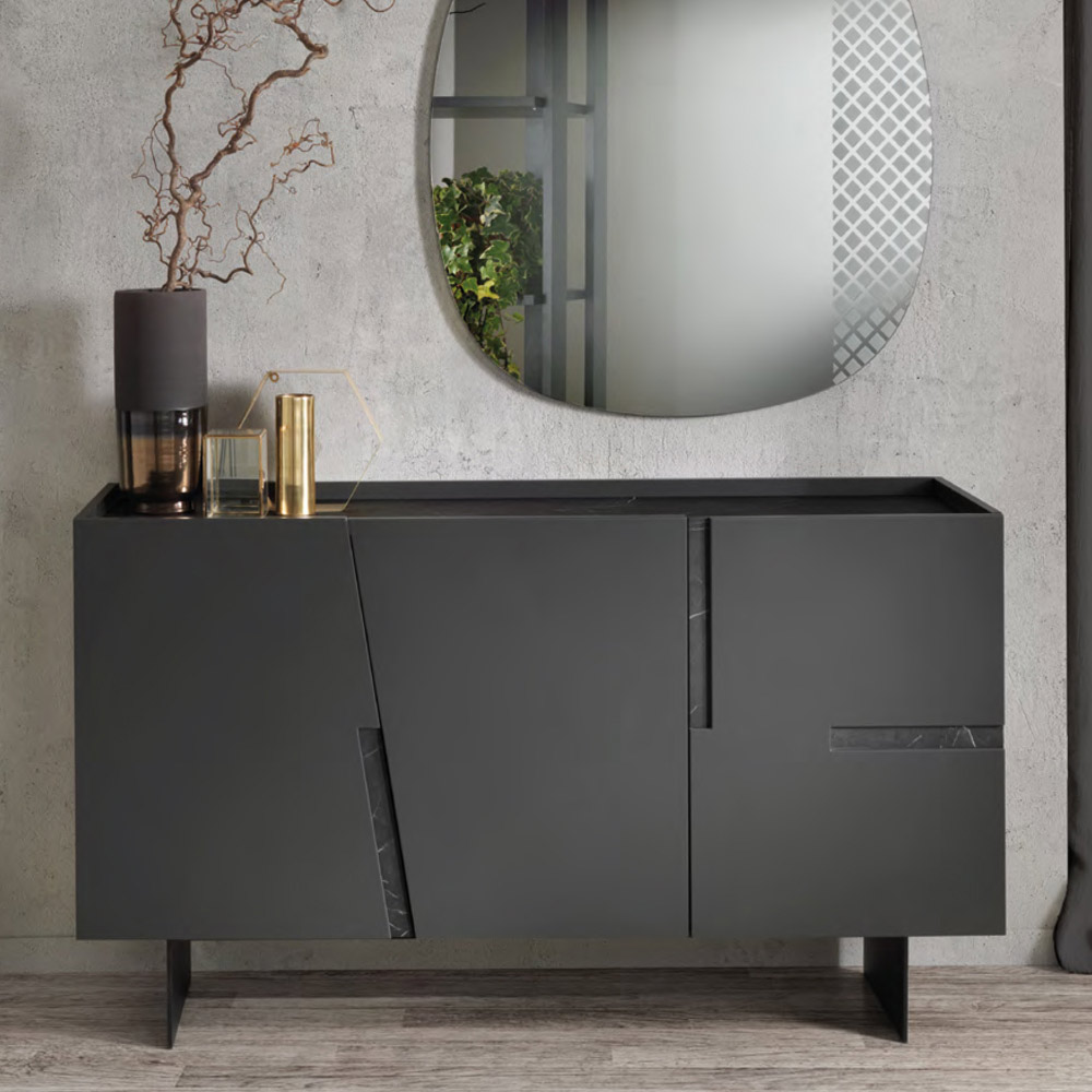 Vardagsrumsskänk i melamin med inlägg i laminat eller spegel Tillverkad i Italien.