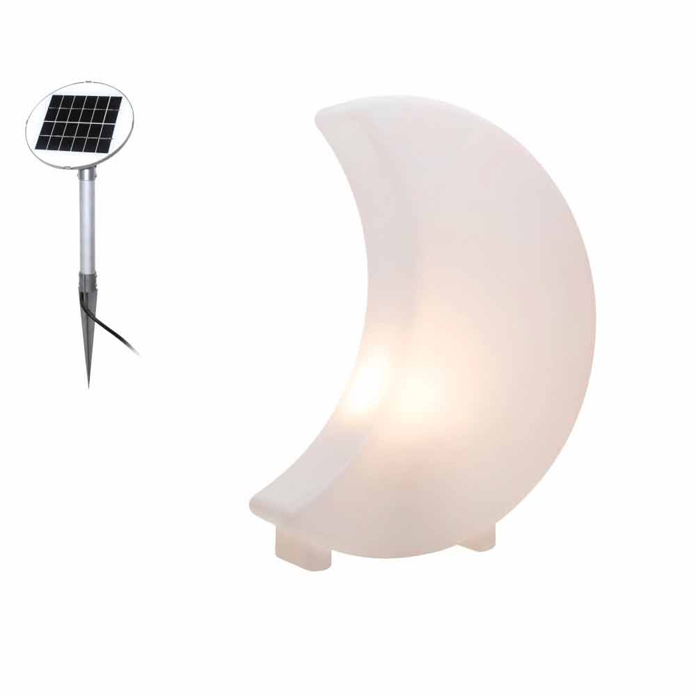 Månformad golv- eller bordslampa för inomhus eller utomhus finns i två storlekar och med olika typer av attacker.