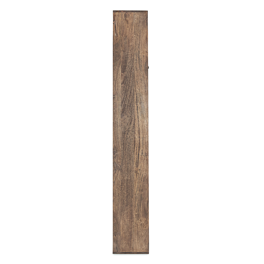 Denna vardagsrumsbokhylla har en mangoträstruktur med MDF-baksida.