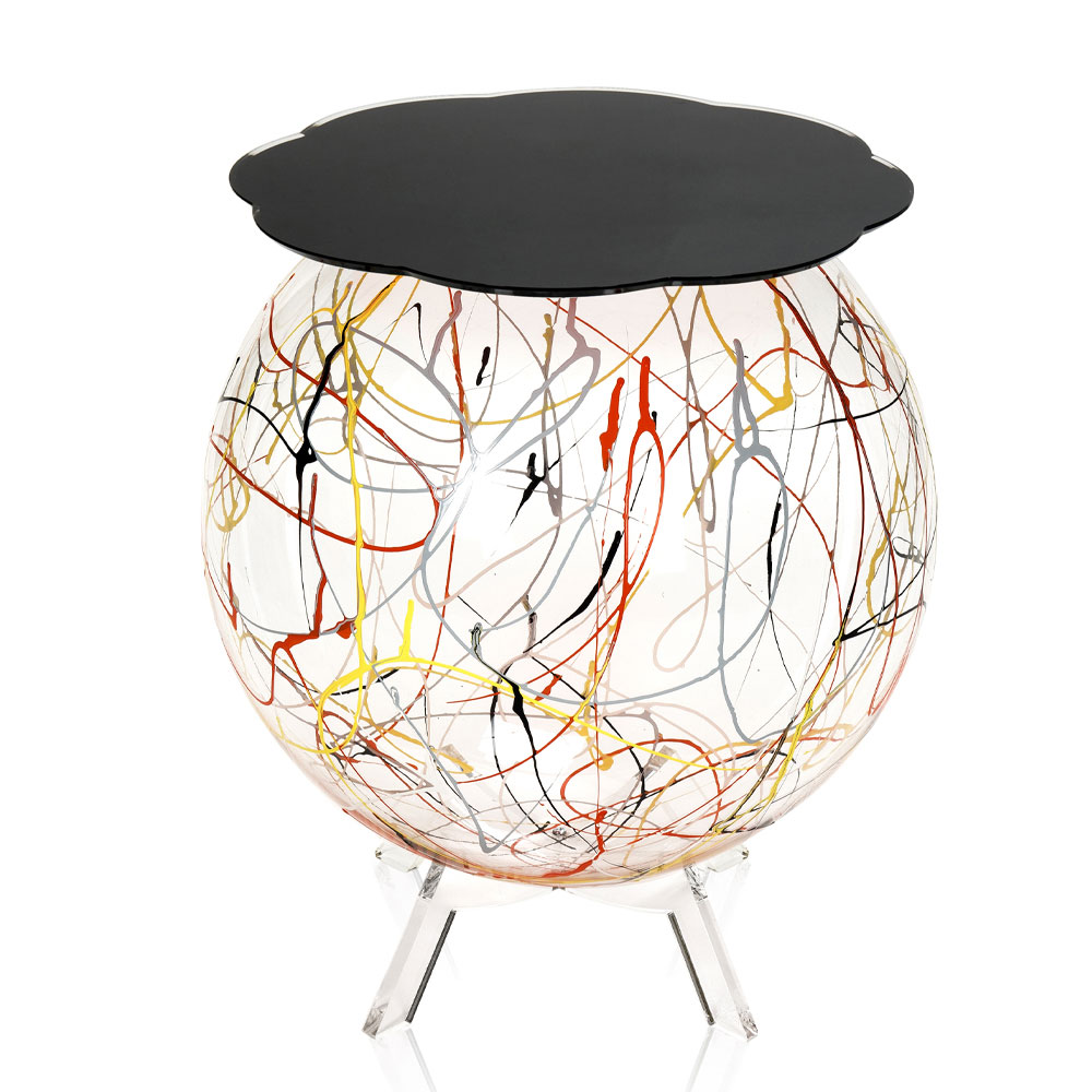 sprayfärg som hyllning till Jackson Pollock och hyllan finns i olika färger. Den slutliga designen är alltså