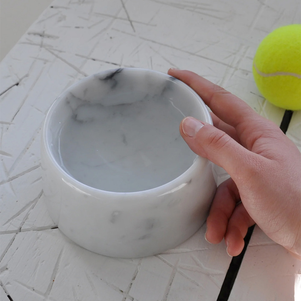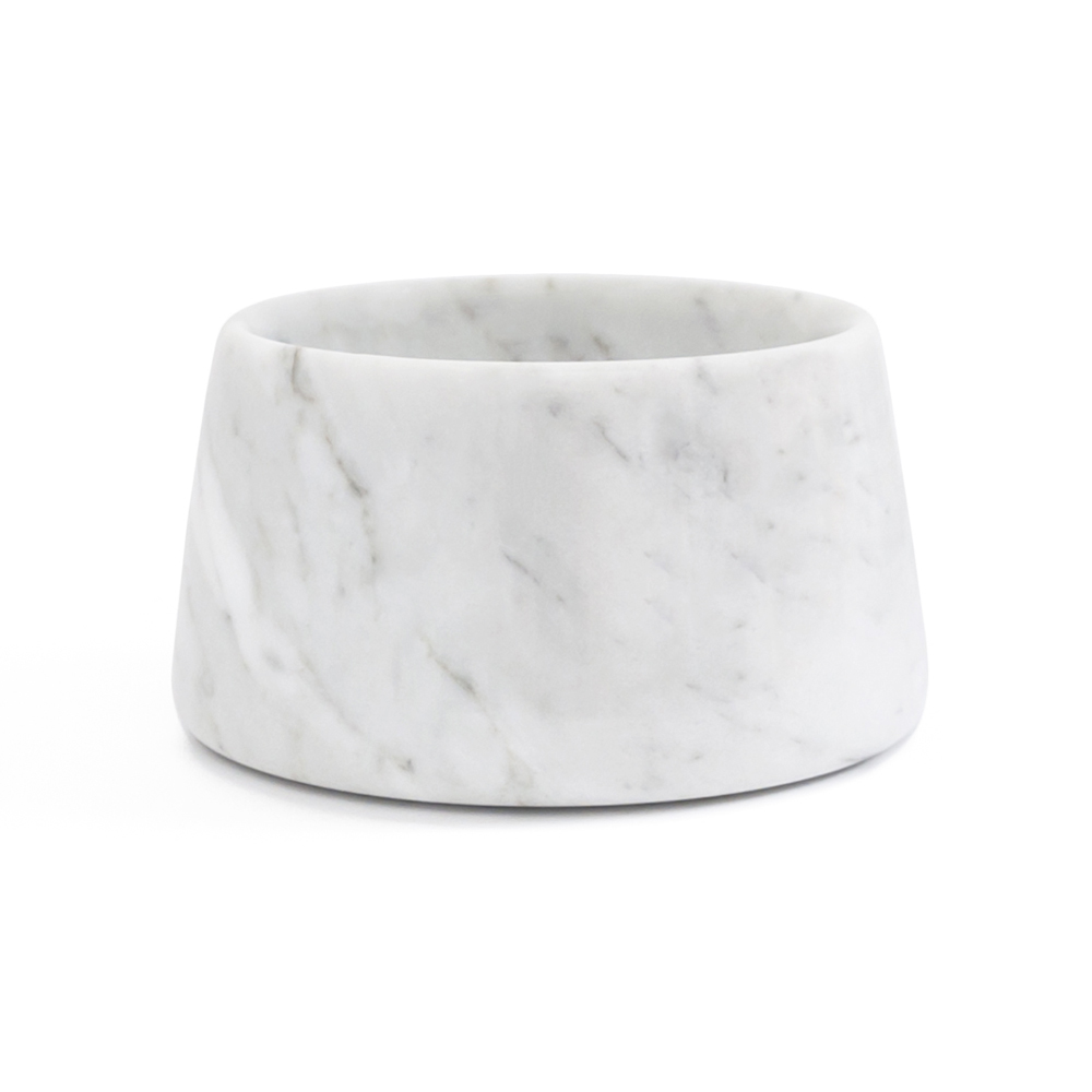 Skapad för husdjursägare som inte vill ge upp stil och kvalitet även i tillbehören till sina älskade husdjur, är denna marmorskål symbolen för tillgänglig lyx , perfekt för dem som uppskattar skönheten och hållbarheten hos Made in Italy -produkter.