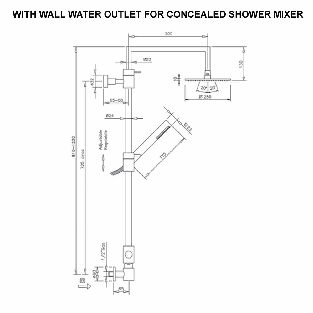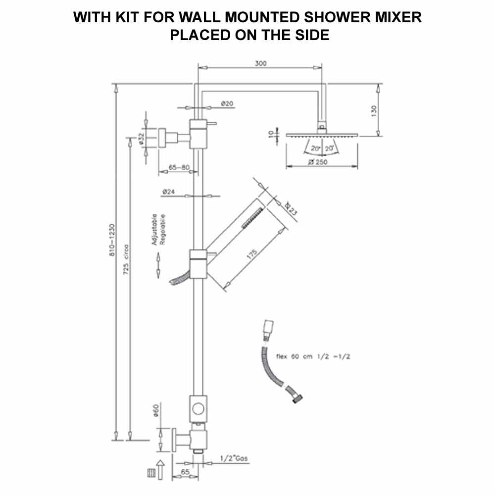 Duschpelare i mässing med duschhuvud och avledare, fin Made in Italy.