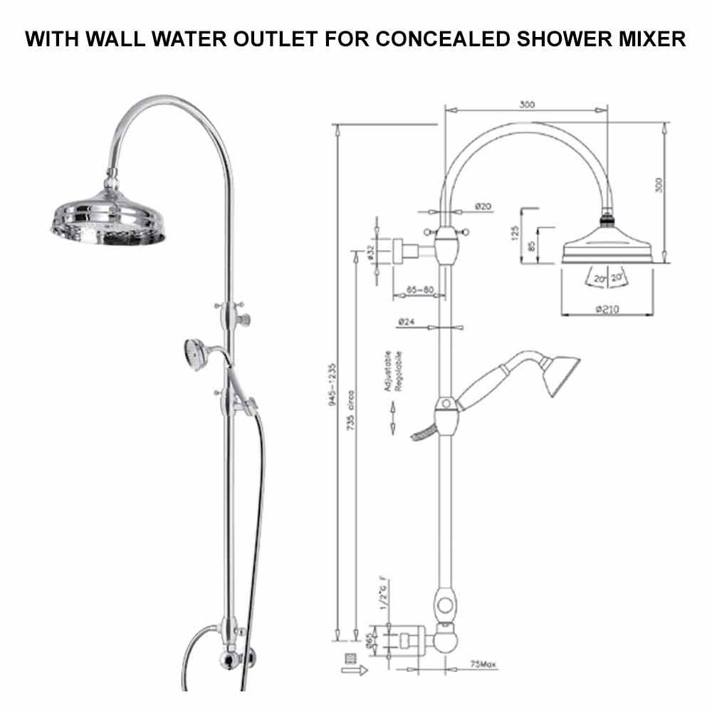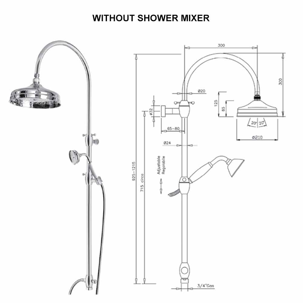 Duschpelare i mässing med duschhuvud och handdusch i klassisk design, hög kvalitet Made in Italy.