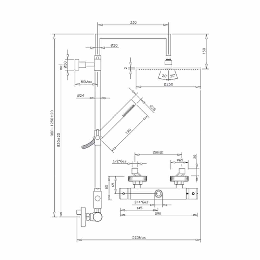 Modern duschpelare i kromad mässing, stål och ABS Made in Italy.