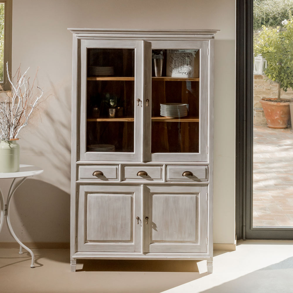 Perfekt för att visa upp porslin, dekorativa föremål eller samlingar. Detta vitrinskåp erbjuder förvaringsutrymme och en elegant displaylösning som upprätthåller ordning och visuell harmoni.