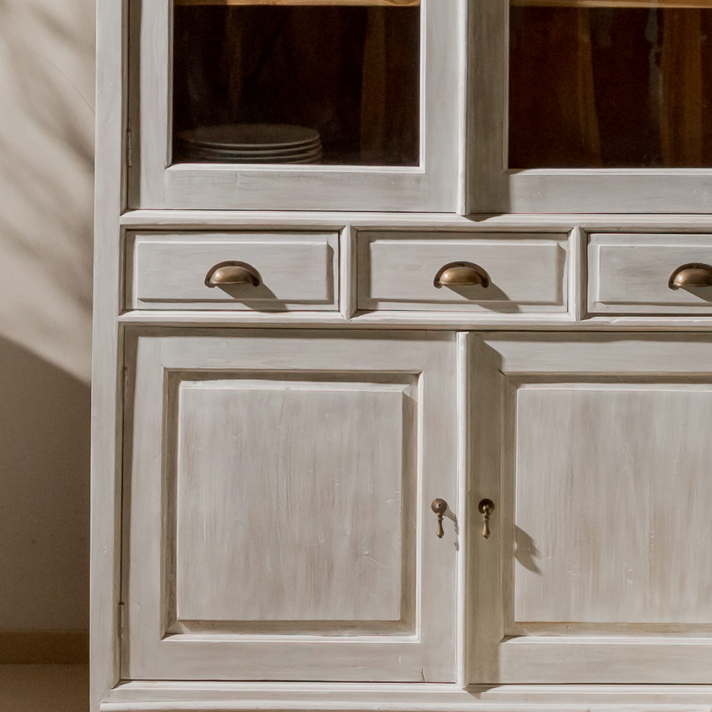 Denna möbel är handgjord av naturligt torkat trä, ett levande material som kan genomgå naturliga rörelser över tid. Eventuella små sprickor eller hakar är inneboende i träet och kan uppstå även med tiden.