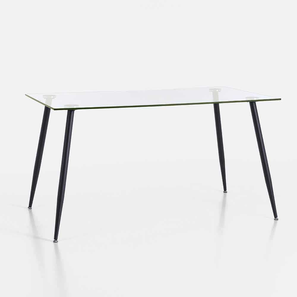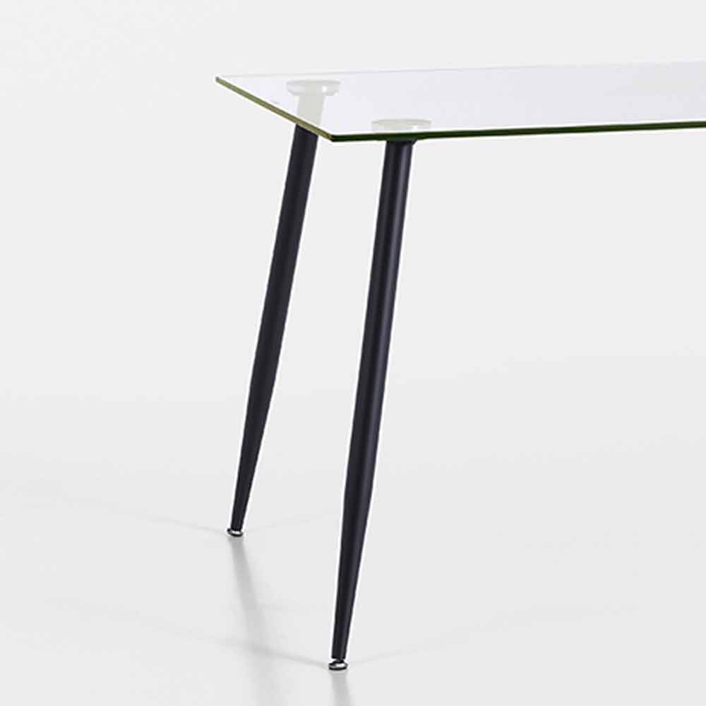 Modern design vardagsrumsbord med härdat glasskiva och mattsvartmålad metallfot.