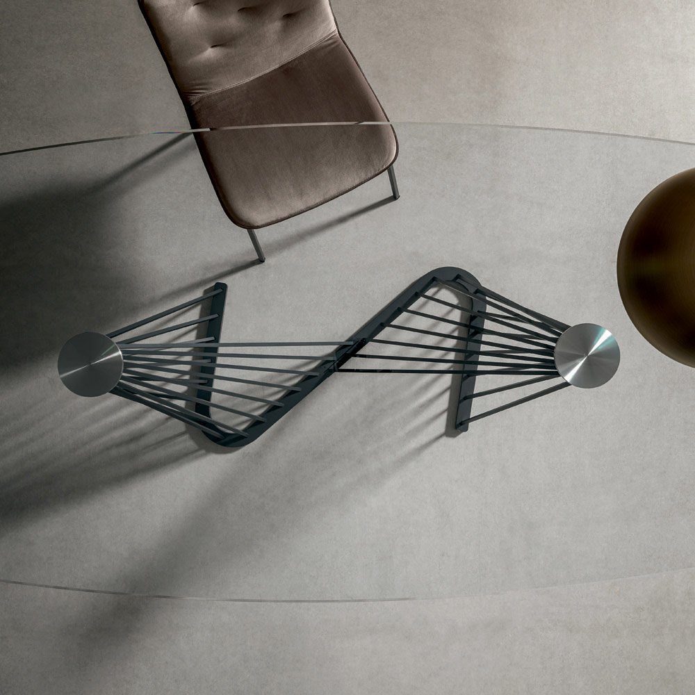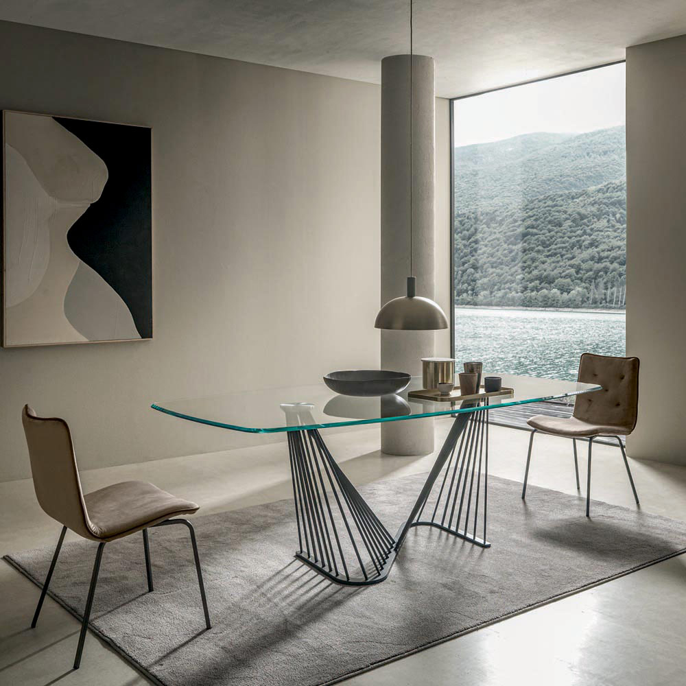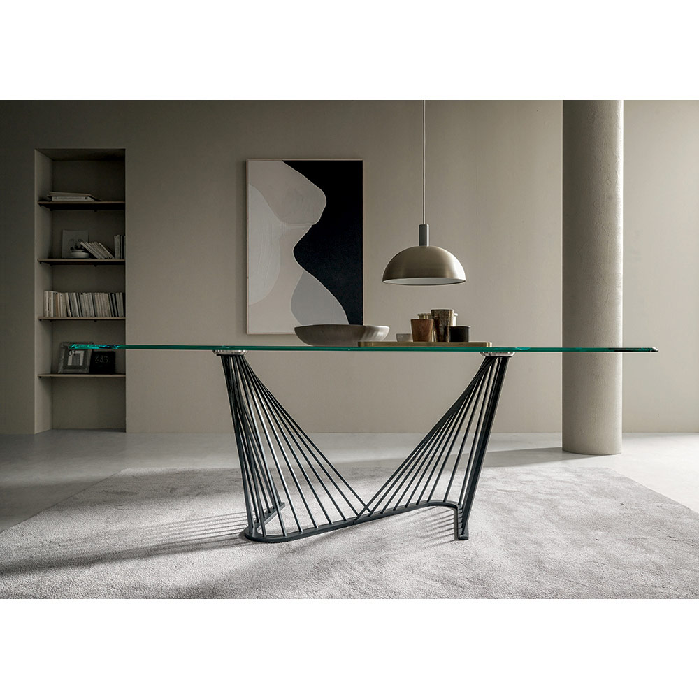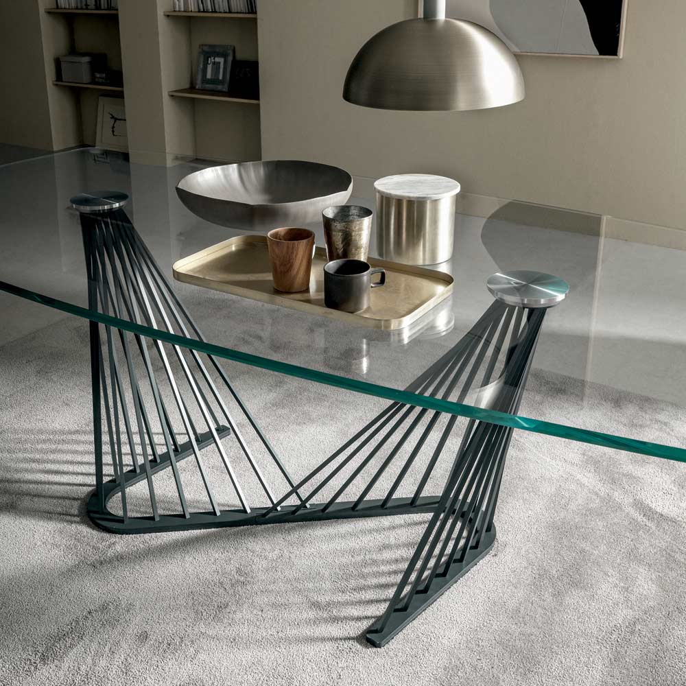 Matbord i transparent glas och underrede med metallrep, 2 storlekar tillverkat i Italien.