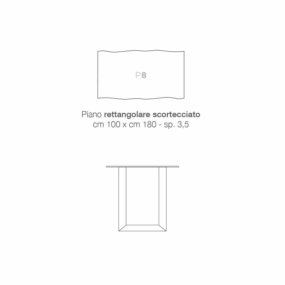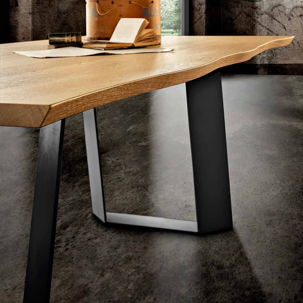 Flora är ett fantastiskt fast bord som upptäcks i Italien med en massiv träpartikel yta som finerats på lond sidorna (tjocklek 35 mm) och en målad metallbas.