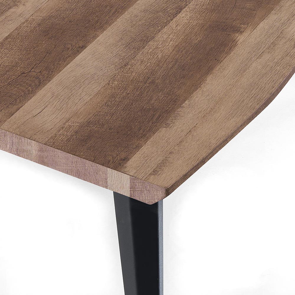 Matbord med skiva i mdf klädd i melamin med ekplankfinish (tjocklek 4cm) och ben med justerbar fot av mattsvartlackerat stål . Ett komplement med en minimal och modern stil designad för att inreda alla bostadsutrymmen på ett väsentligt sätt, vilket för med sig funktionalitet och elegans . Kombinationen av ytbehandlingar och valda material berikar produkten med personlighet och gör att den garanterar soliditet, stabilitet och utmärkt hållbarhet . Resultatet är därför ett avantgardistiskt matbord som kännetecknas av en markant mångsidighet av användning som kan fullborda alla hem- eller kontraktssituationer med personlighet.