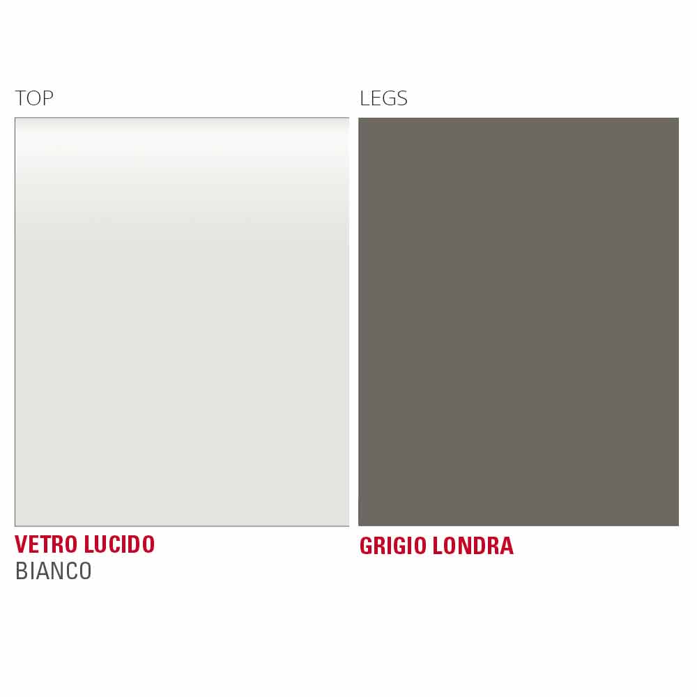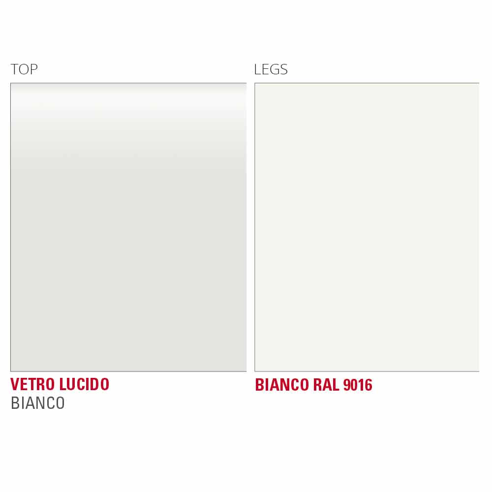 Köksbord med vit glasskiva och metallstruktur Tillverkat i Italien.